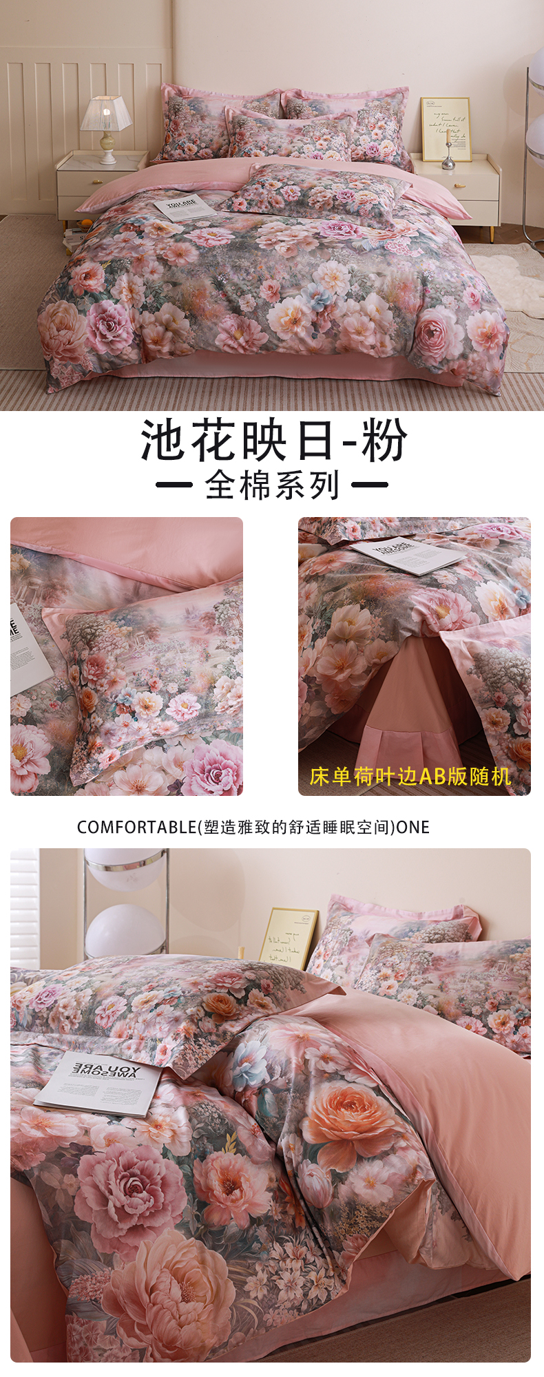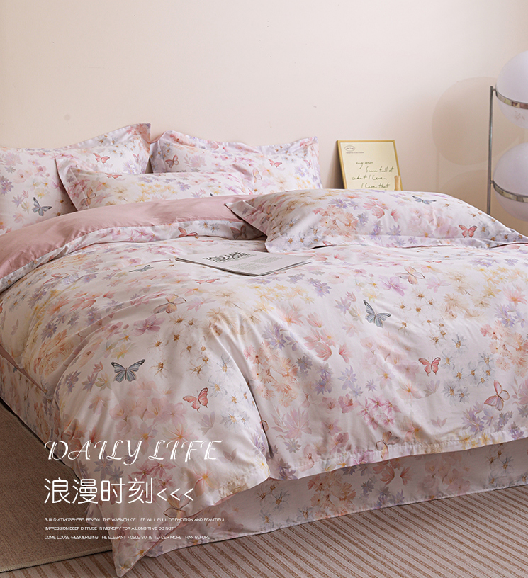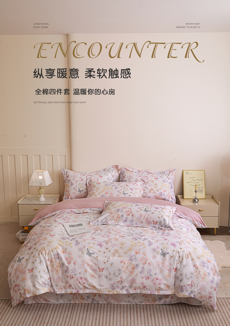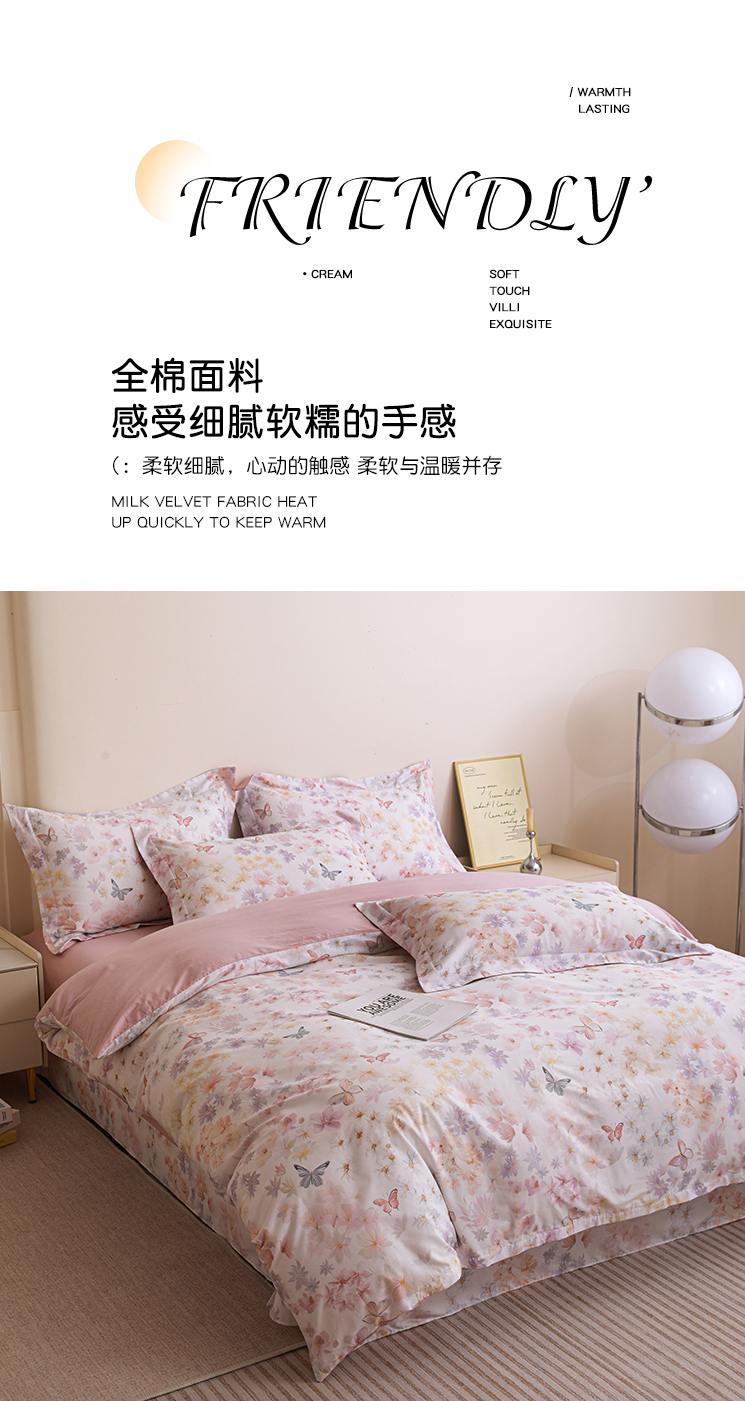 当前位置: 91家纺网 > 商品网购 > 床品套件 > 四件套 > 全棉普通四件套 > 朵希曼 2026新款全棉纯棉大版定位13376数码印花系列四件套 蝶影入怀-粉