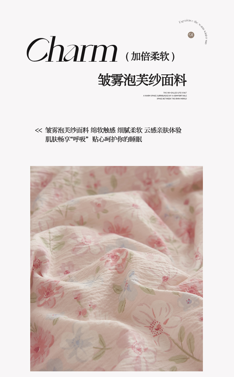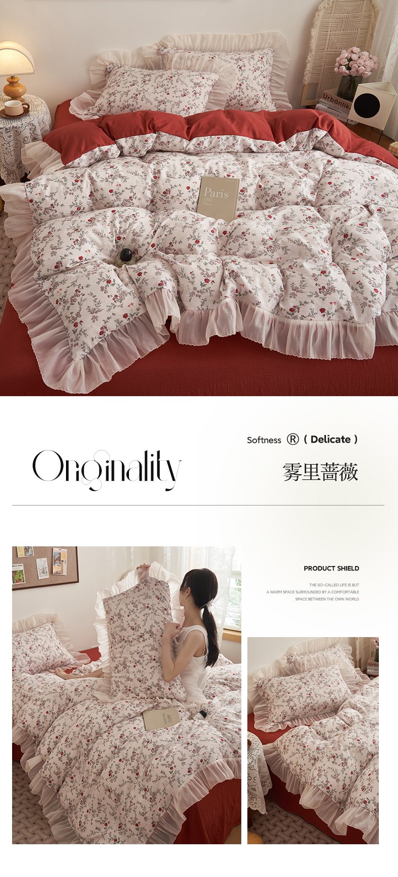 当前位置: 91家纺网 > 商品网购 > 床品套件 > 四件套 > 其它四件套 > 晨曦家纺 2026春夏新款皱雾纱泡芙纱水洗少女ins风韩版四件套 云间花信