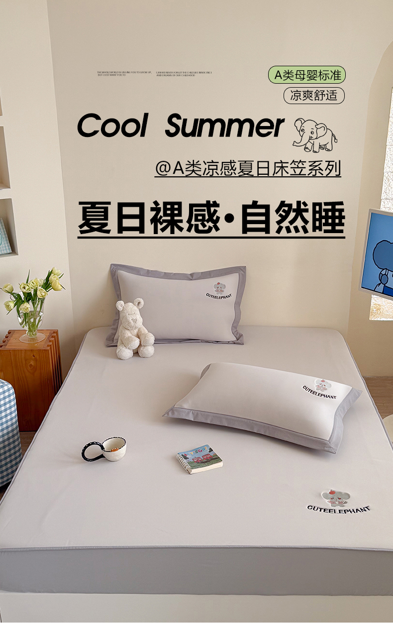 商品名称:Sweet dreams甜梦 2026新款夏款A类锦氨卡通刺绣立体床笠款凉感席 乐萌小象