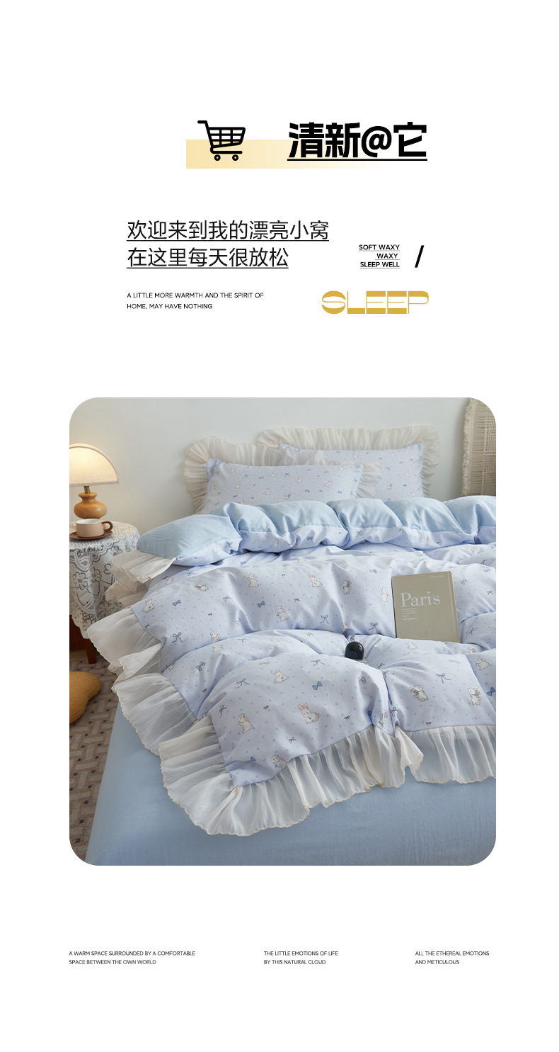 当前位置: 91家纺网 > 商品网购 > 床品套件 > 四件套 > 其它四件套 > 晨曦家纺 2026春夏新款雪花皱纱花边小碎花小清新少女风四件套 紫韵甜心