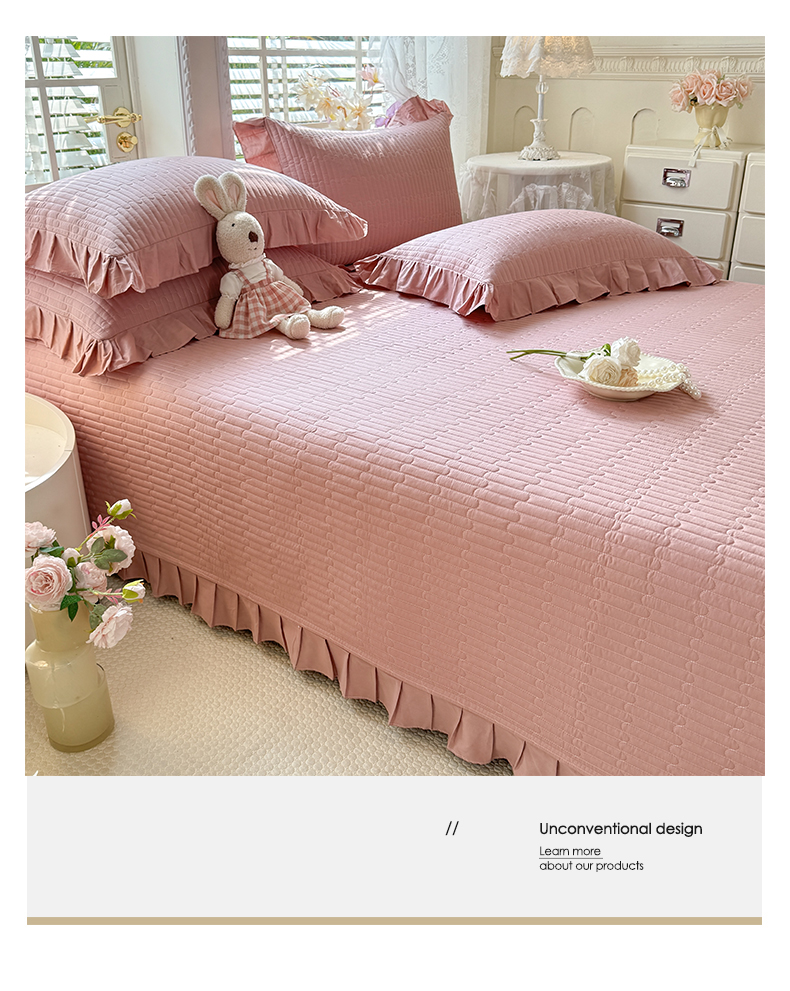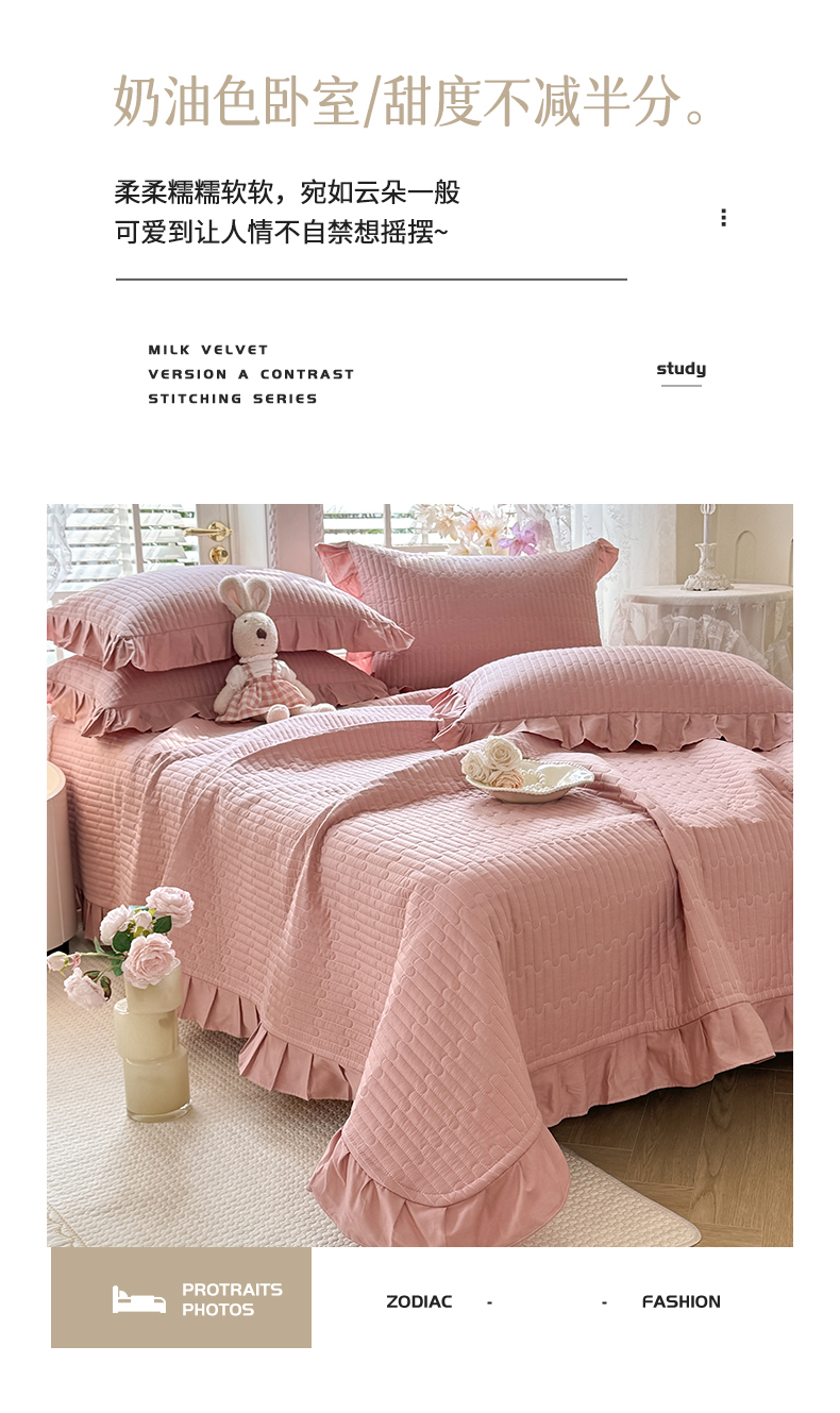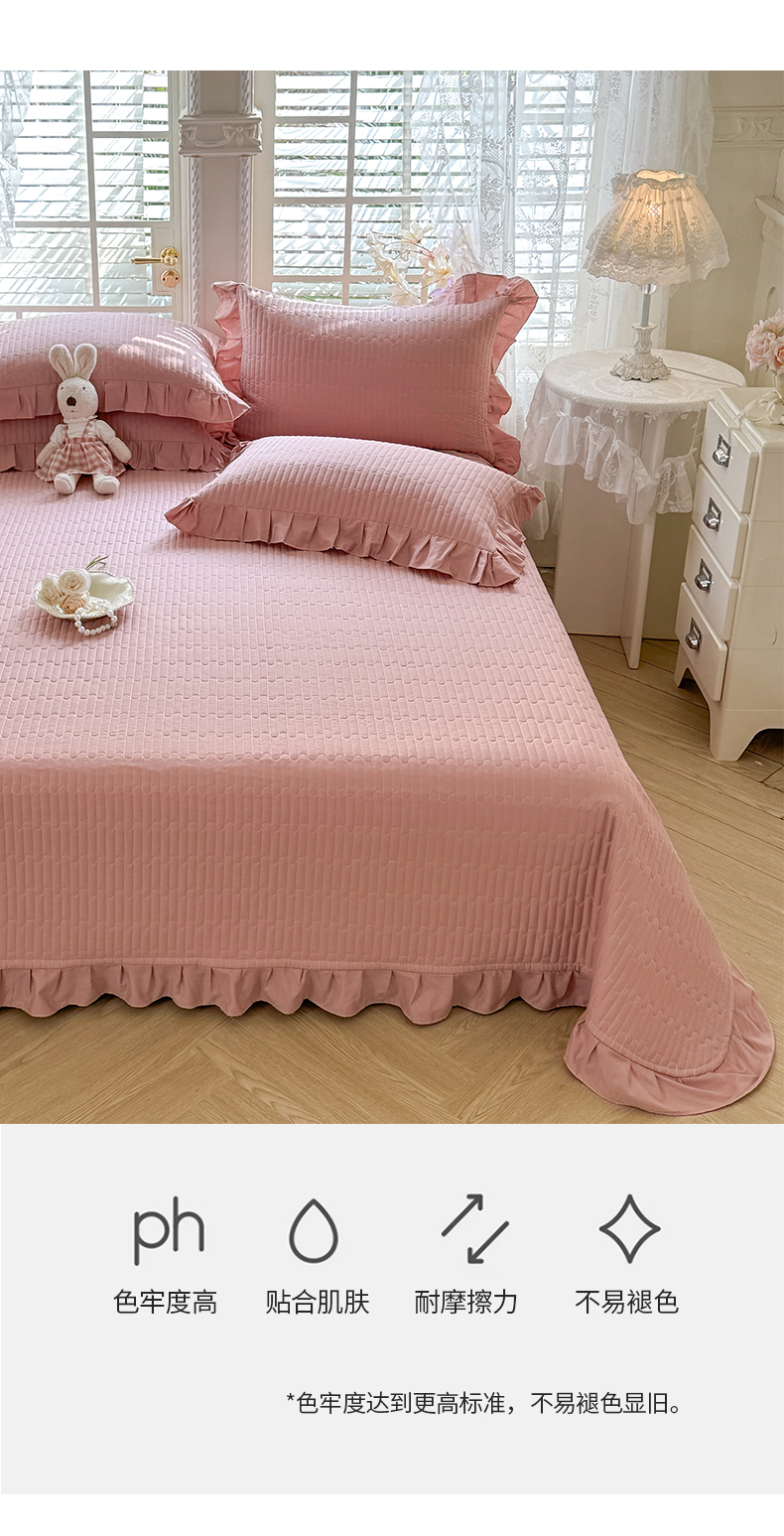 • 91家纺网 家纺一手货源 找家纺 花香四季家纺 2026新款13376全棉夹棉床盖三件套13372纯棉纯色床盖花边公主风(可定制任意尺寸) 豆沙色