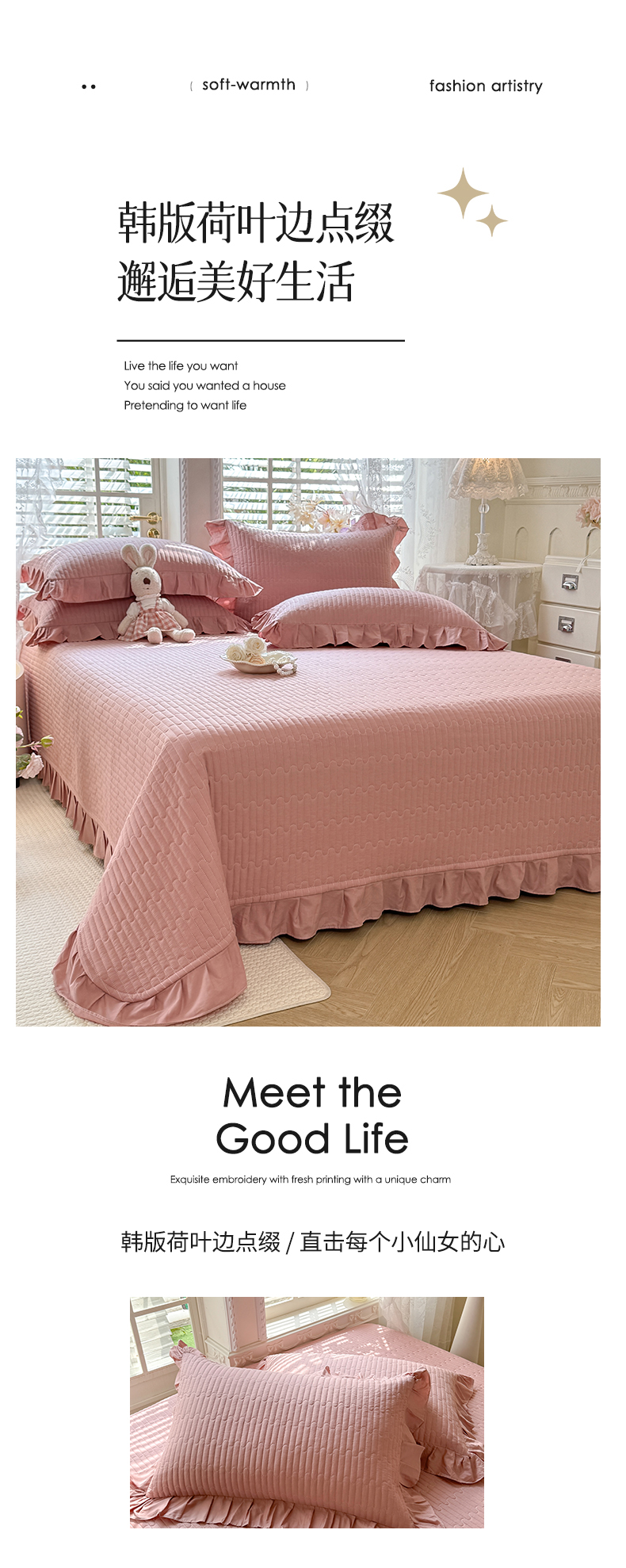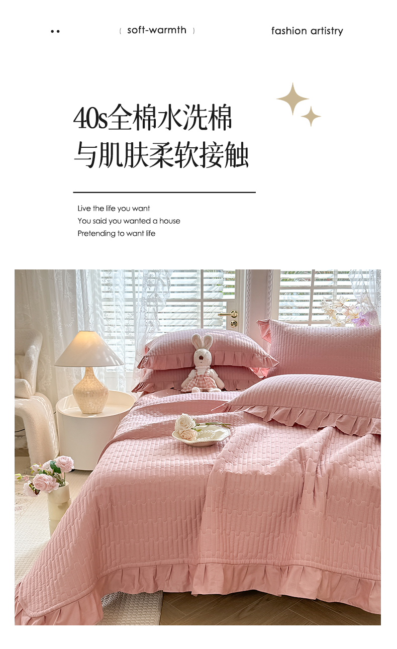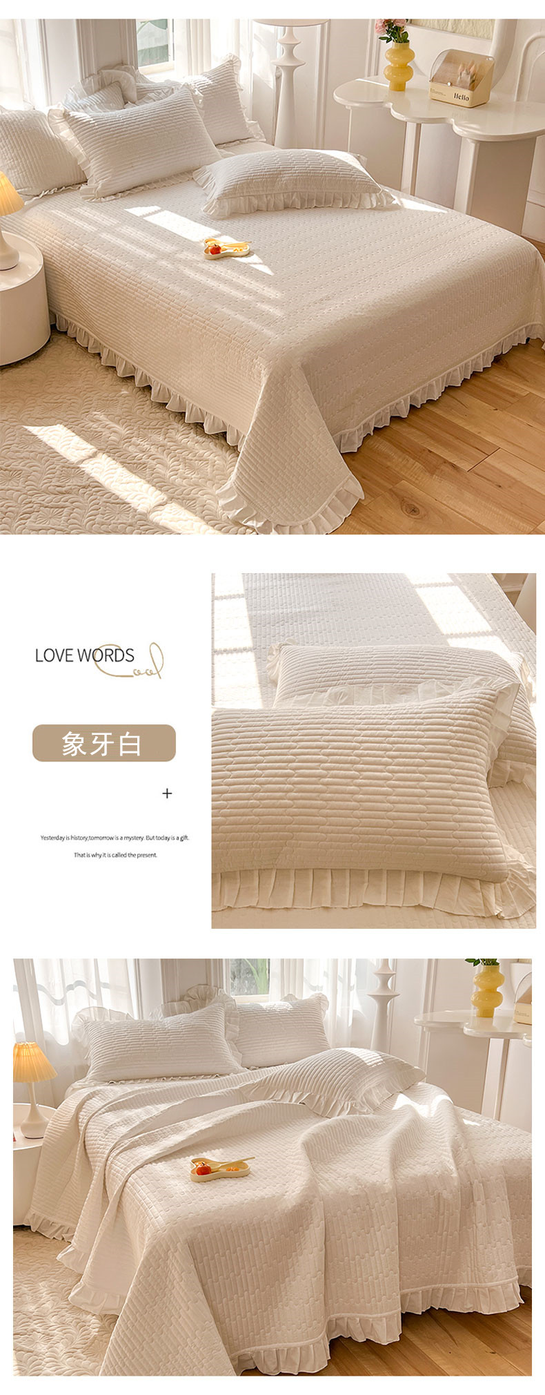 • 91家纺网 家纺一手货源 找家纺 (总)花香四季家纺 2026新款13376全棉夹棉床盖三件套13372纯棉纯色床盖花边公主风(可定制任意尺寸),薄荷绿,清新蓝,奶酪黄,气质灰,甜心粉,豆沙色,暮林绿,荔枝粉,象牙白,芝士黄,组合图