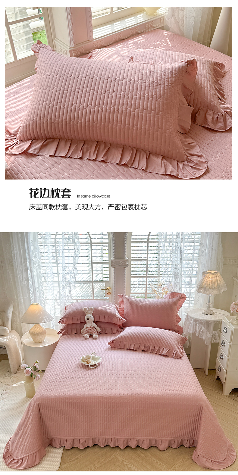 • 91家纺网 家纺一手货源 找家纺 花香四季家纺 2026新款13376全棉夹棉床盖三件套13372纯棉纯色床盖花边公主风(可定制任意尺寸) 豆沙色 91家纺网 家纺一手货源 找家纺 花香四季家纺 2026新款13376全棉夹棉床盖三件套13372纯棉纯色床盖花边公主风(可定制任意尺寸) 豆沙色