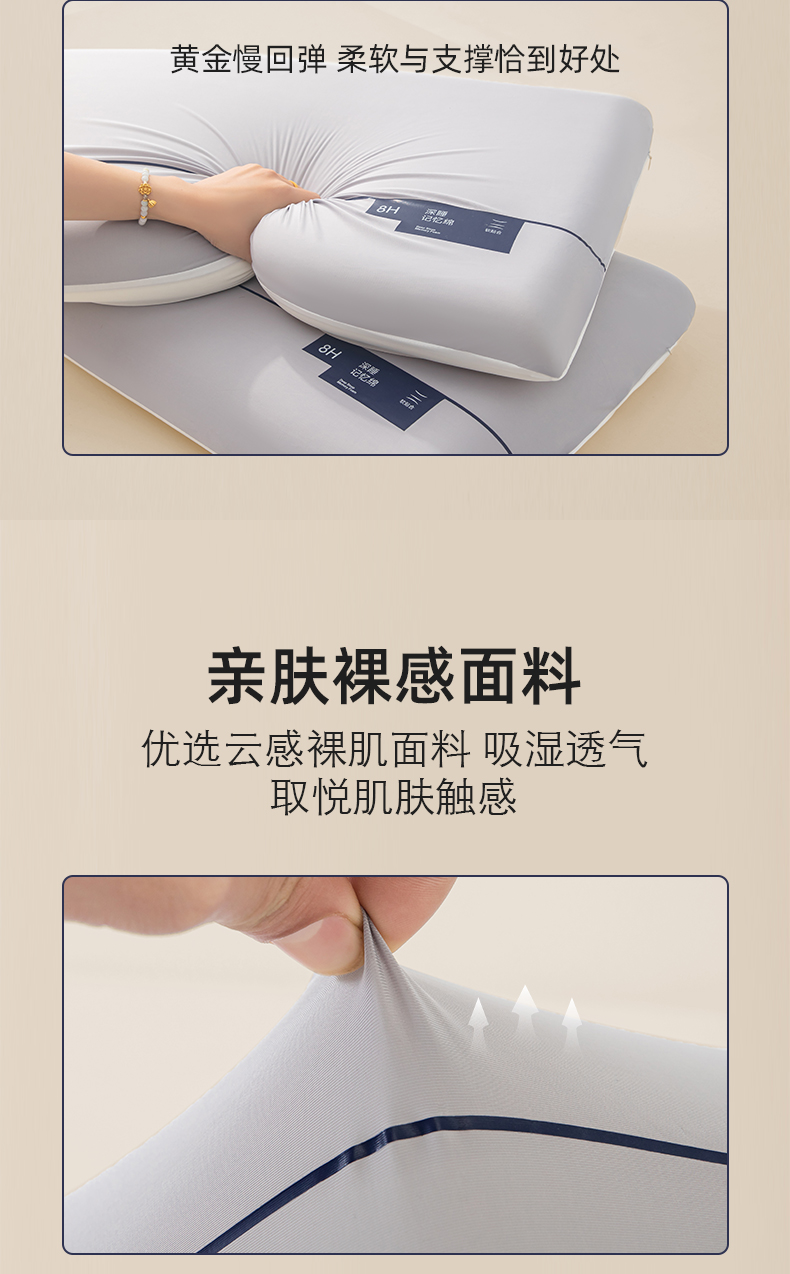 当前位置: 91家纺网 > 商品网购 > 枕头/枕芯/保健枕/颈椎枕 > 枕头枕芯 > (总)七夜居 2026新款灰白双拼慢回弹深睡太空记忆枕芯面包枕 枕头枕芯