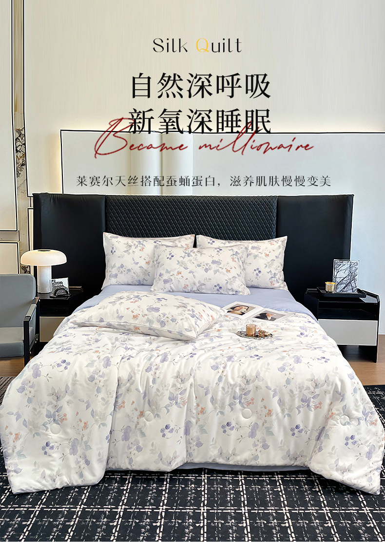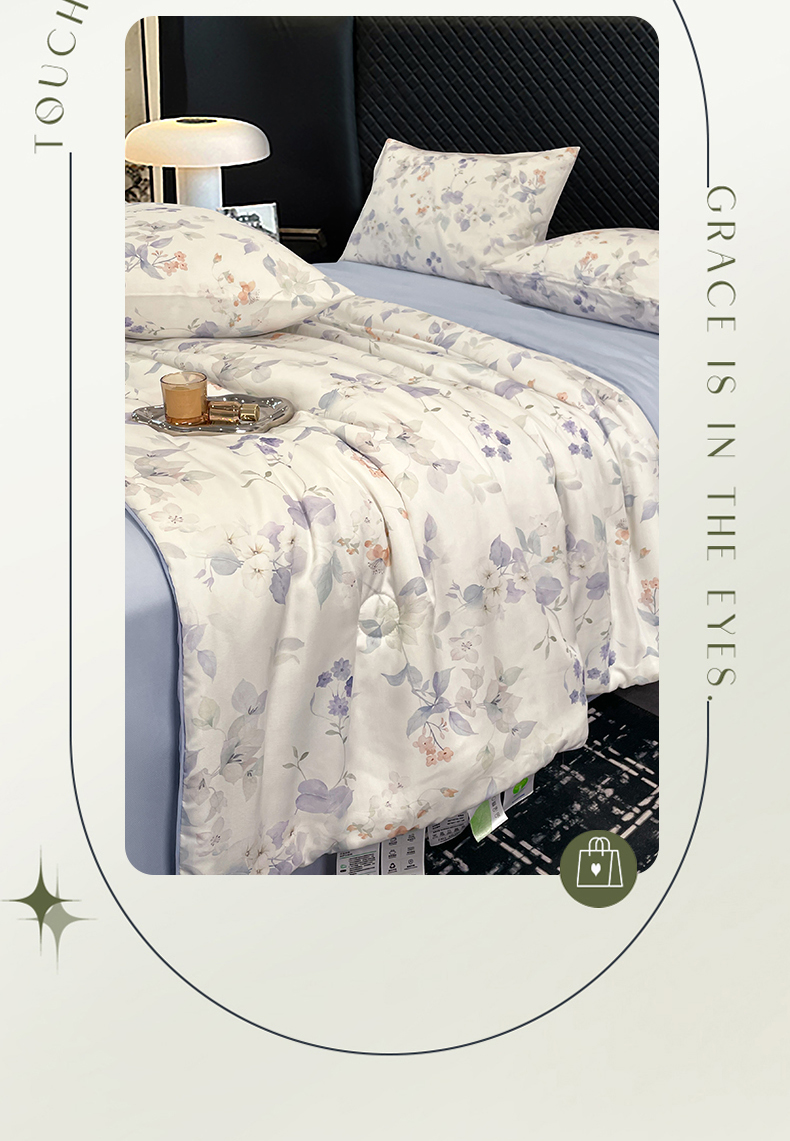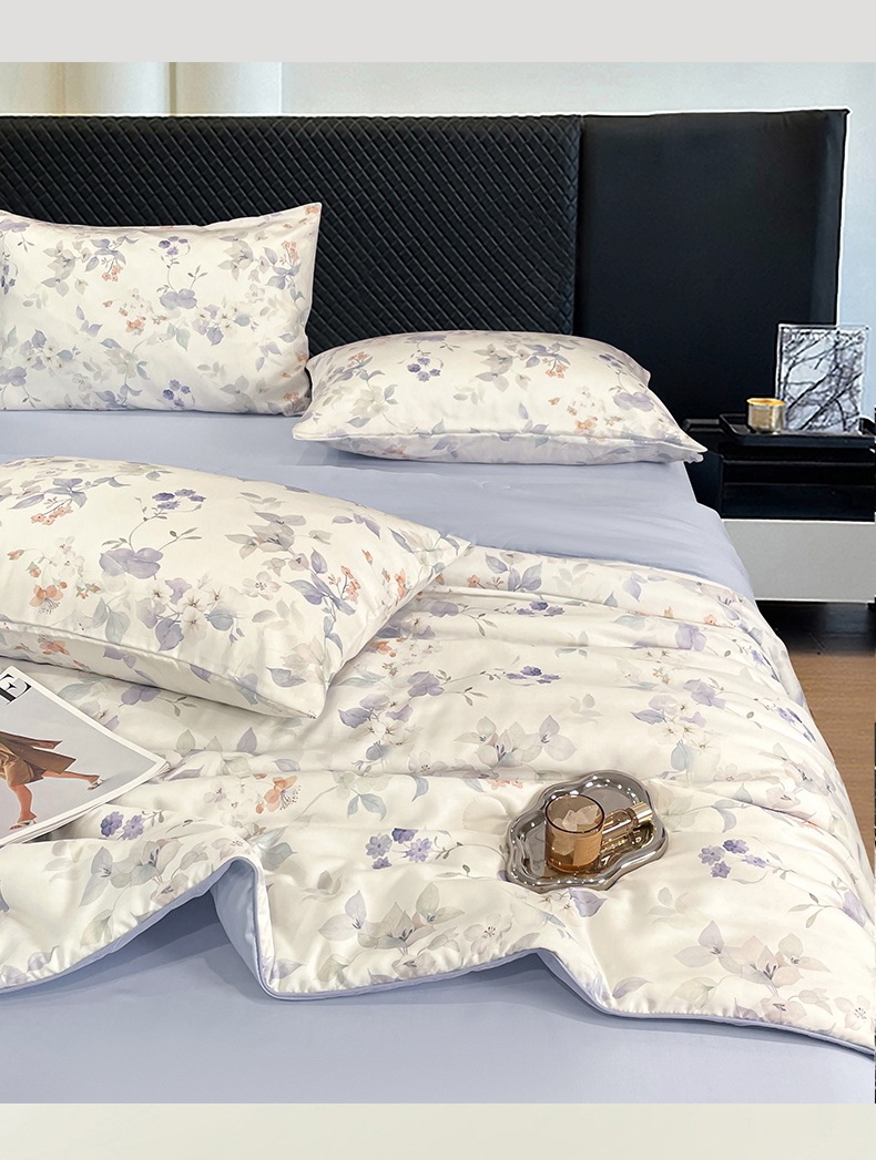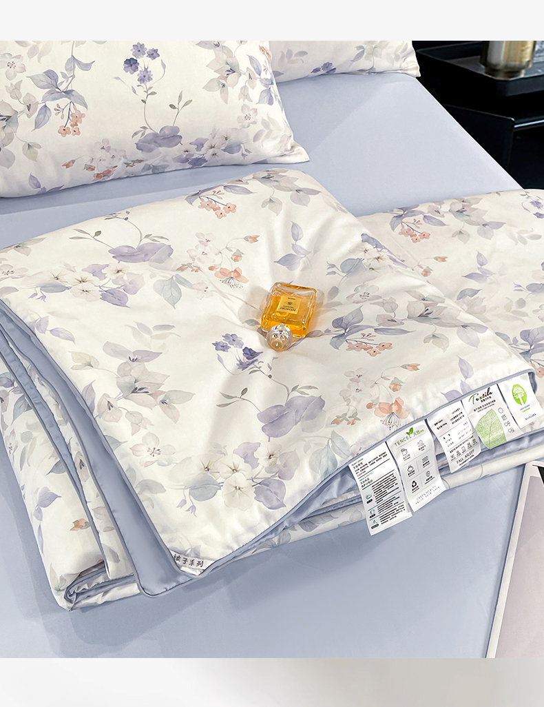 (总)尊妙被业 2026春夏新款莱赛尔天丝夏被蚕蛹蛋白夏被夏凉被空调被四件套-印花款,暗香绘-棕,花颜外-蓝,林屿间-粉,林语花夏-米,柳语素枝-绿,蔓行-绿,沐初-兰,叶间绒雪-兰,自然低语-绿