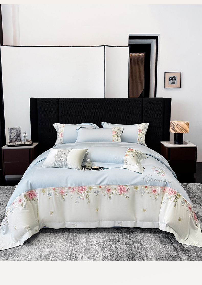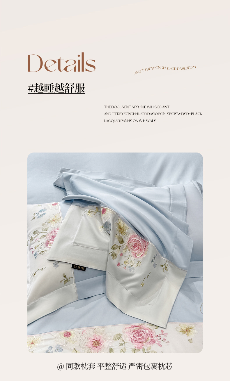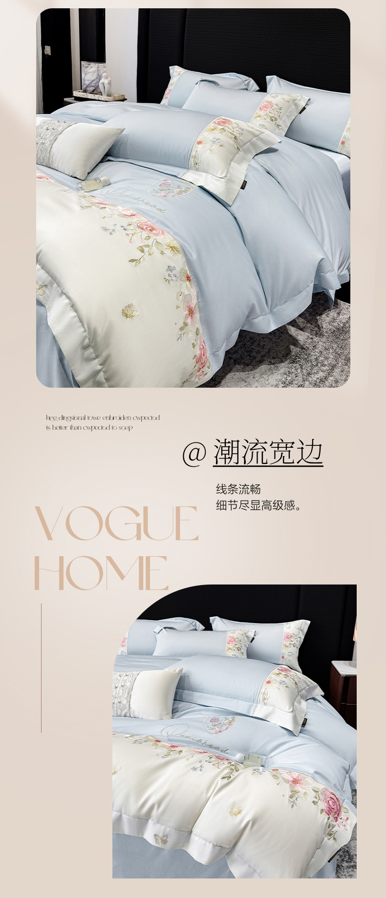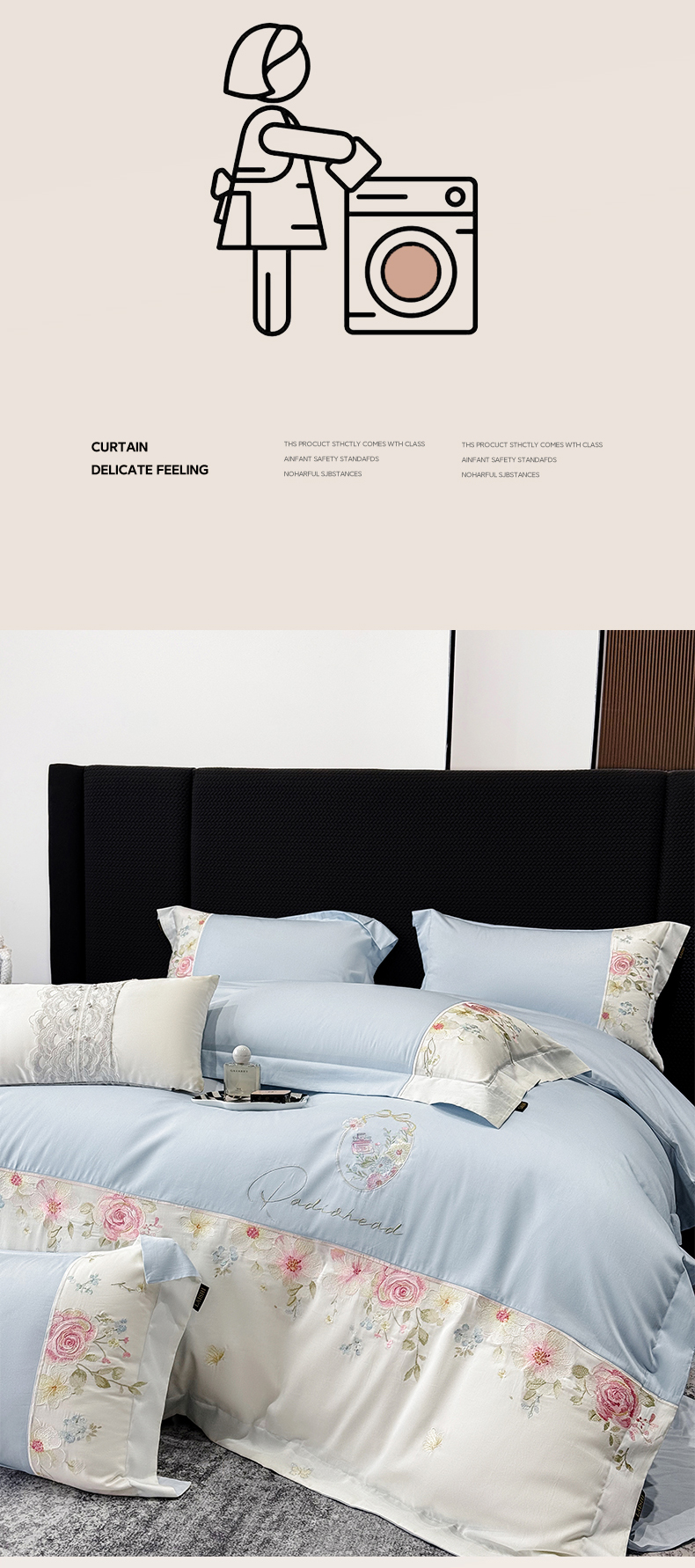 (总)莱势 2026新款100支全棉纯棉50x50s埃及贡缎长绒棉刺绣绣花四件套高端礼盒-花开半夏系列,花开半夏-天空蓝,花开半夏-绿野仙踪,花开半夏-轻奢粉