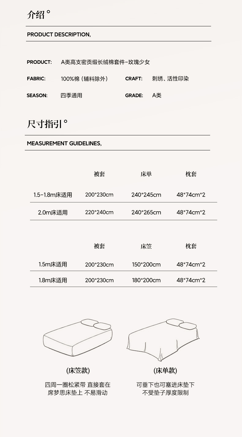 (总)莱势 2026新品100支全棉纯棉50x50s贡缎长绒棉刺绣绣花四件套高端礼盒-玫瑰少女,玫瑰少女 轻奢粉,玫瑰少女 天空蓝,玫瑰少女 绿野仙踪,玫瑰少女 香芋紫