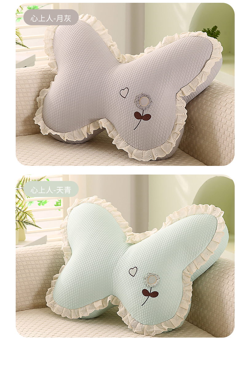 商品名称:蔻眠 花边款凉豆豆凉感丝蝴蝶抱枕靠枕异型枕芯 两小无猜-月灰