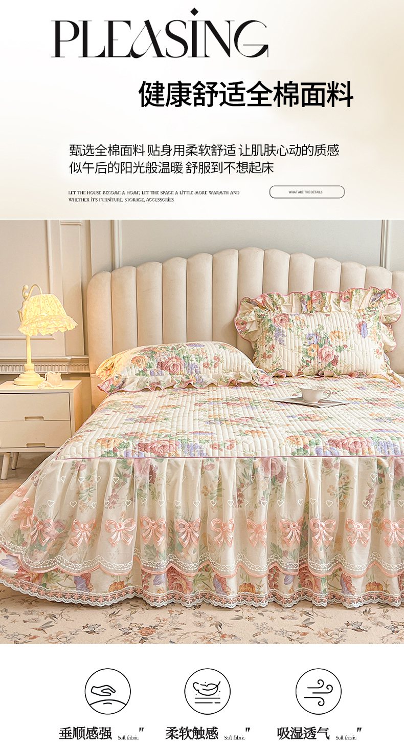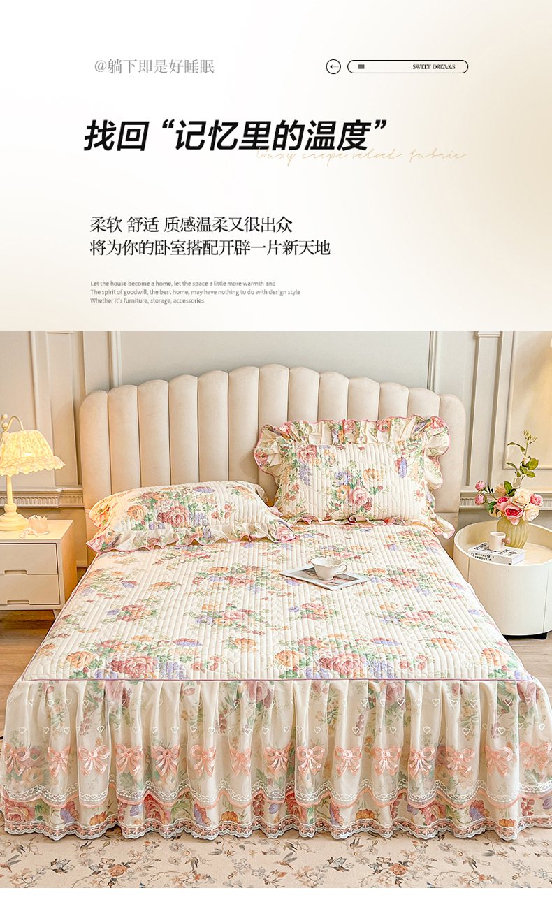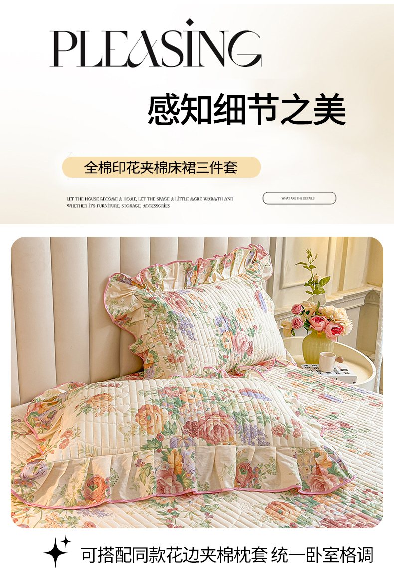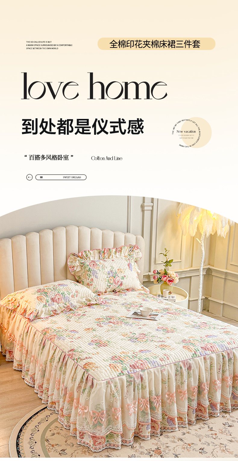 当前位置: 91家纺网 > 商品网购 > 床品套件 > 三件套 > 宜凡家纺 2026新款全棉印花公主风夹棉床裙三件套 春色入梦