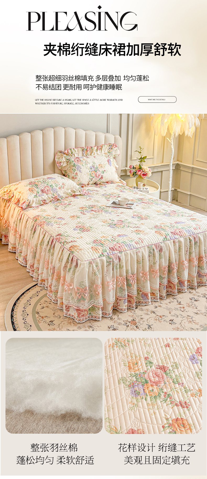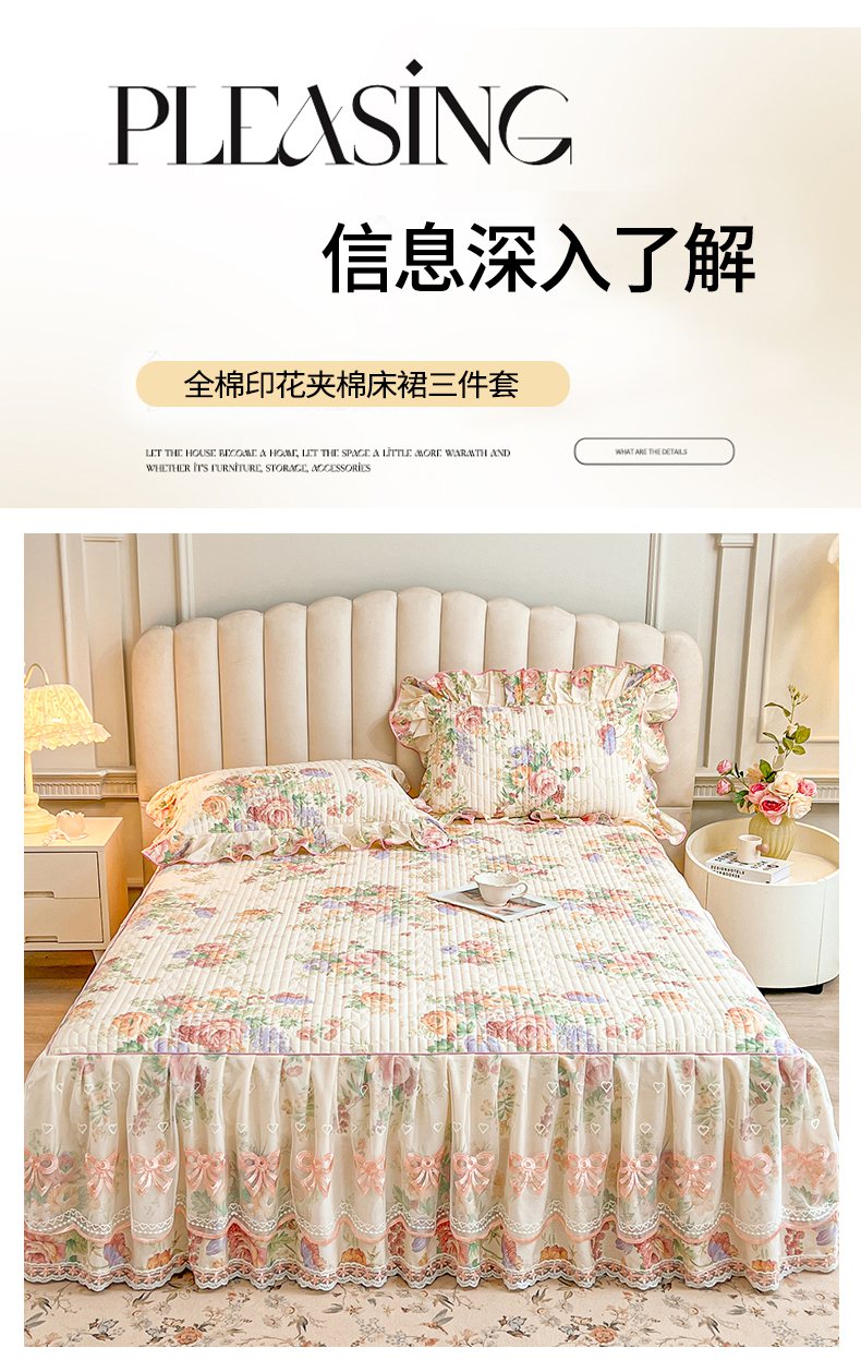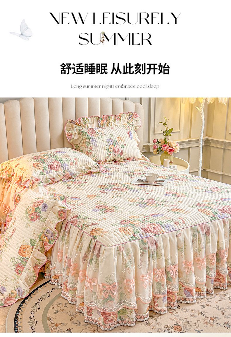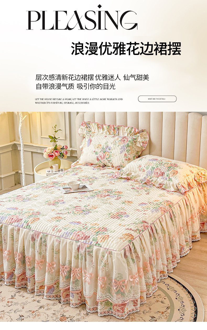 当前位置: 91家纺网 > 商品网购 > 床品套件 > 三件套 > 宜凡家纺 2026新款全棉印花公主风夹棉床裙三件套 春色入梦