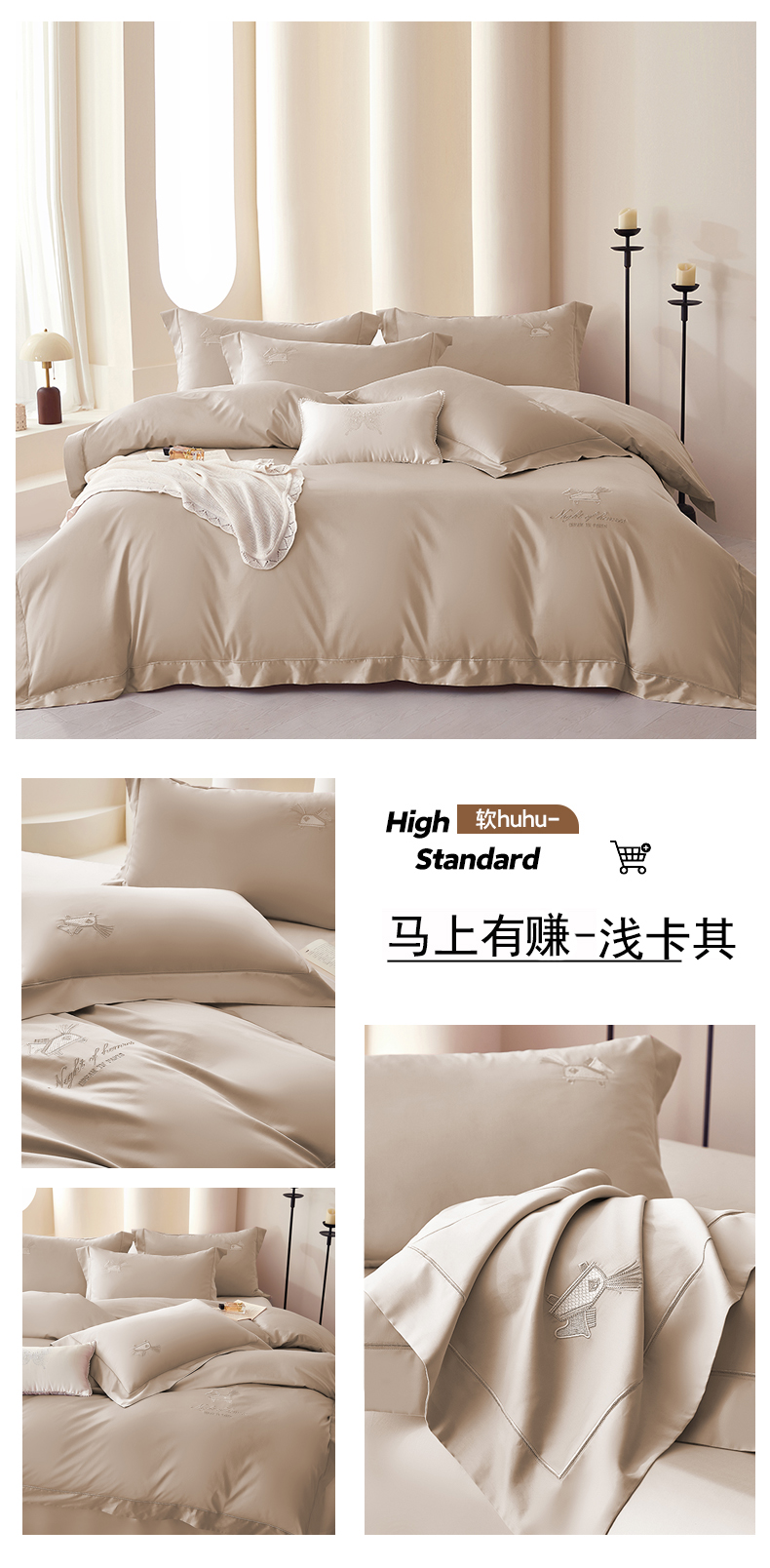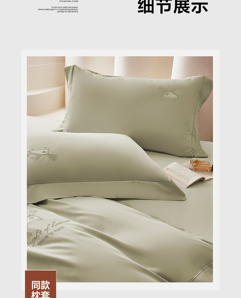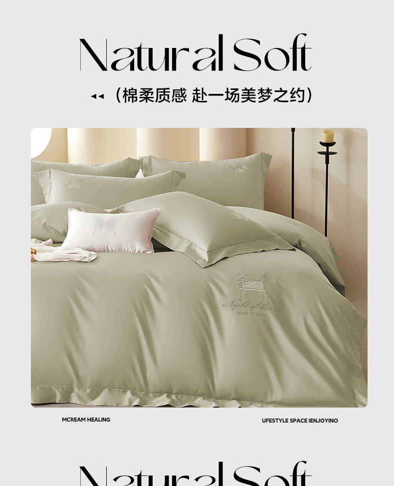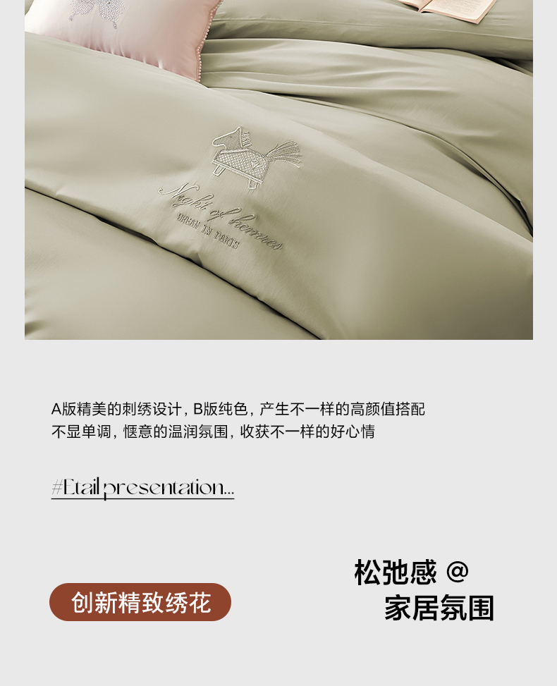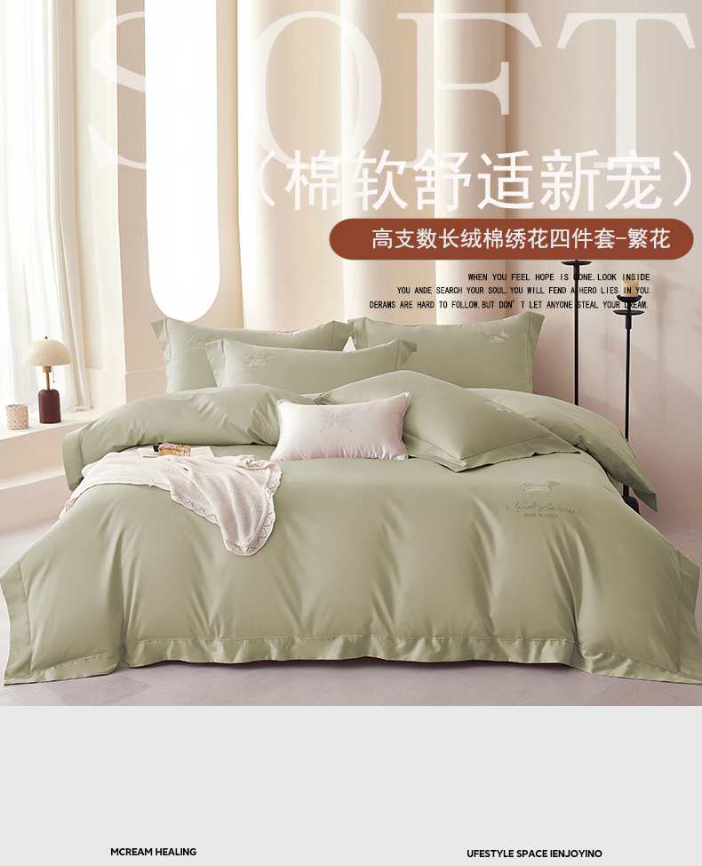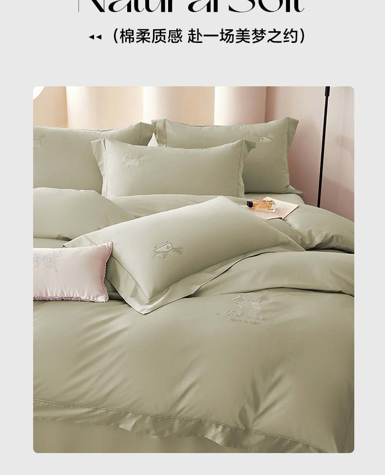 商品名称:蒂爵 2026新款高支数长绒棉纯棉刺绣四件套-马上有赚系列 艾草绿