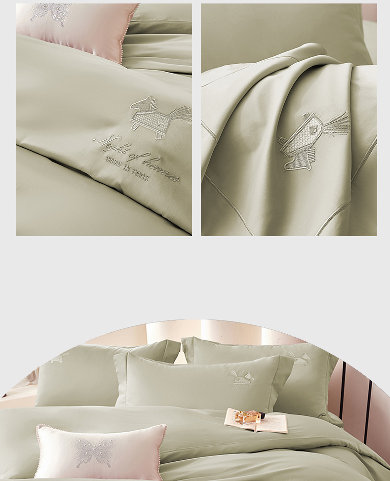 蒂爵 2026新款高支数长绒棉纯棉刺绣四件套-马上有赚系列 艾草绿