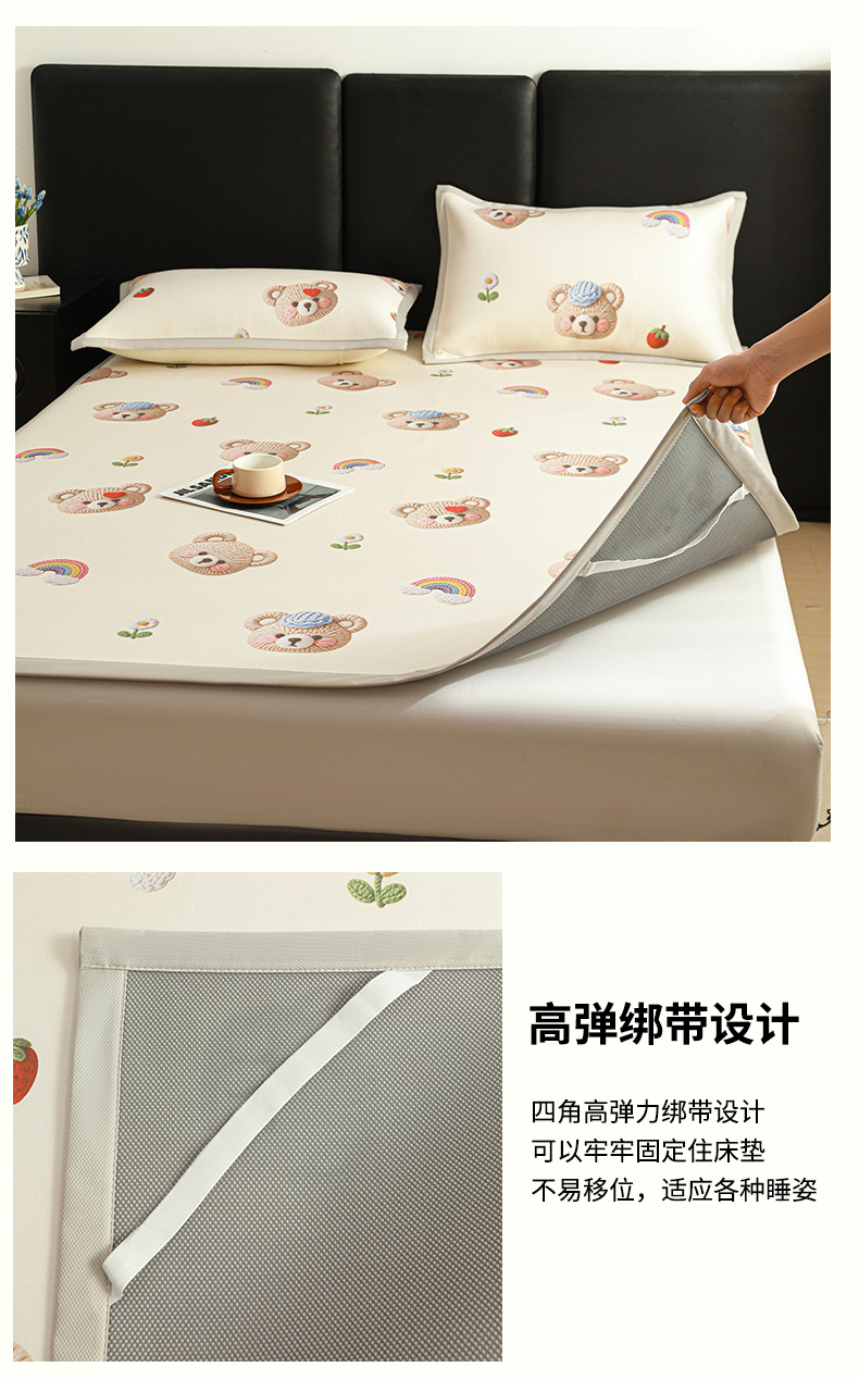 (总)富馨莱 2026新款冰丝凉席床笠款凉席席子支持一件定制定做,LOVE心,冰川蓝,冰淇淋兔,饼干熊,彩虹乐园,彩虹云朵,彩色烟花,淡雅粉,快乐熊猫,凉感灰,蜜桃兔,清新绿,淘气喵,晚安小熊,小萌龙,星空小马,星星小马-白,星星小马-粉,组合图仅供展示不可下单