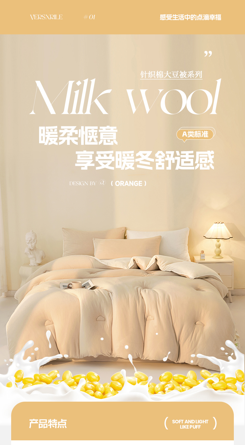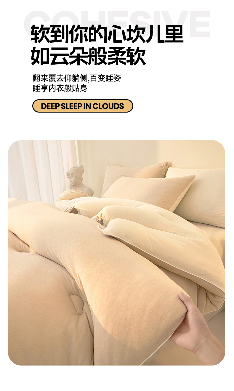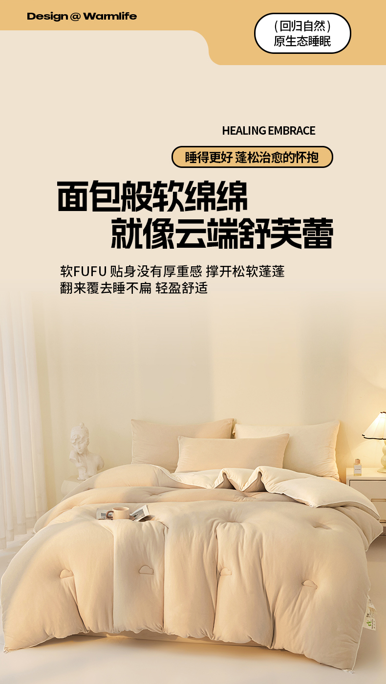 • 91家纺网 家纺一手货源 找家纺 织雅漫 2026新款针织棉大豆被冬被加厚春秋被被子被芯 暖咖+米白