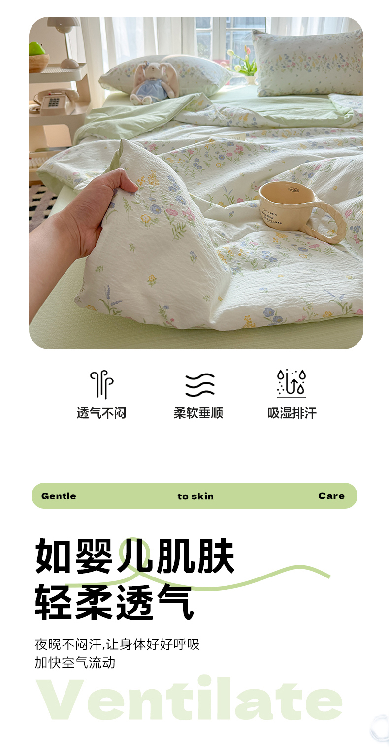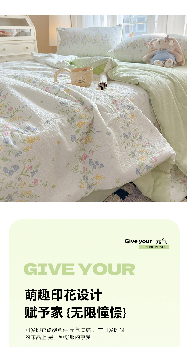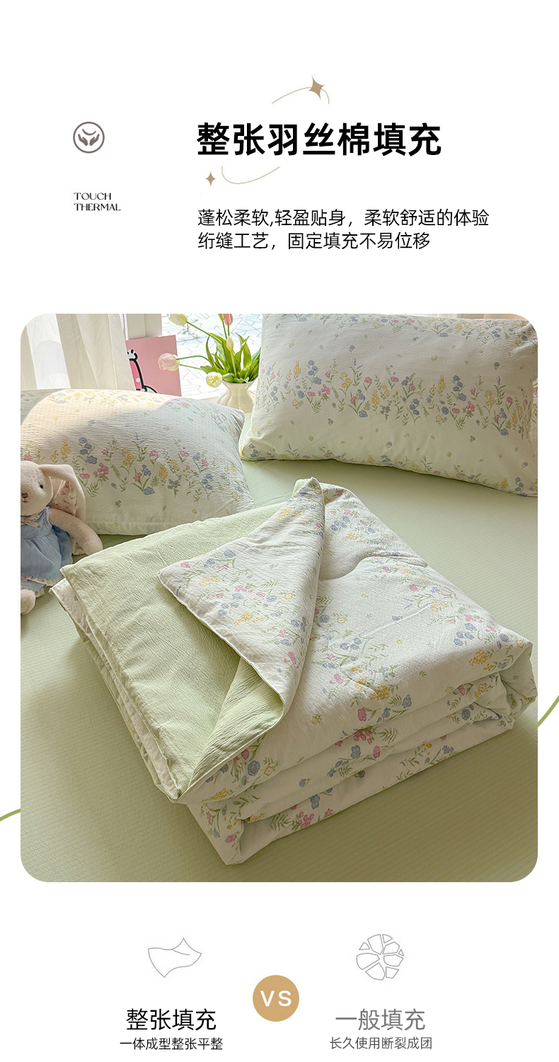 商品名称:温眠家纺 2026新款针织泡芙双层纱夏被四件套 小森系