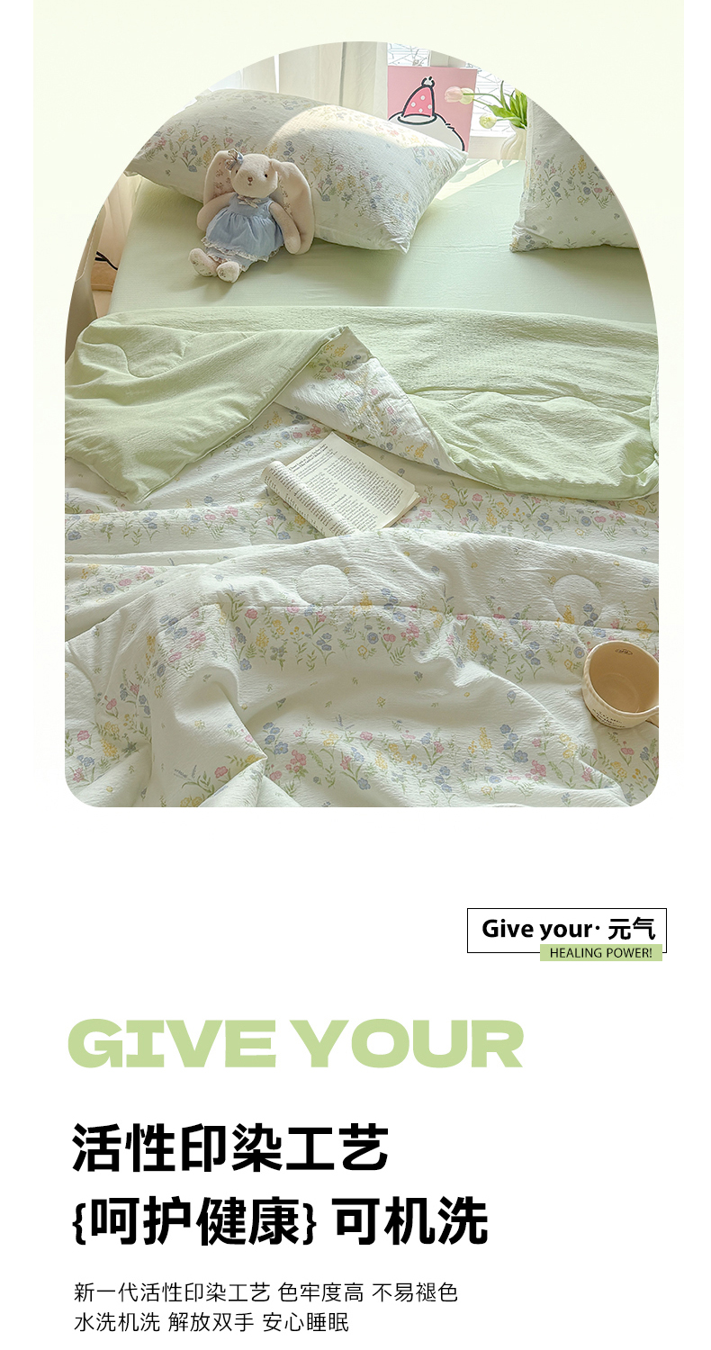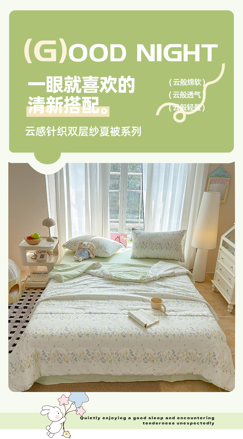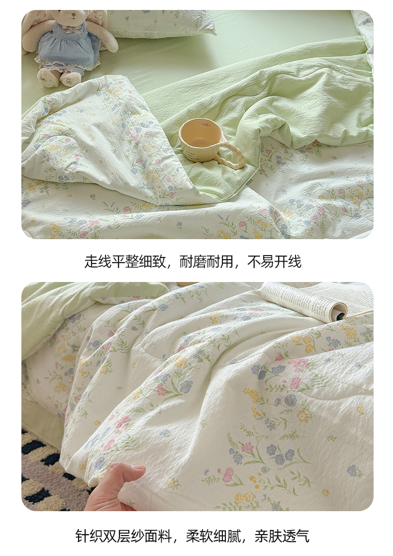 商品名称:温眠家纺 2026新款针织泡芙双层纱夏被四件套 小森系