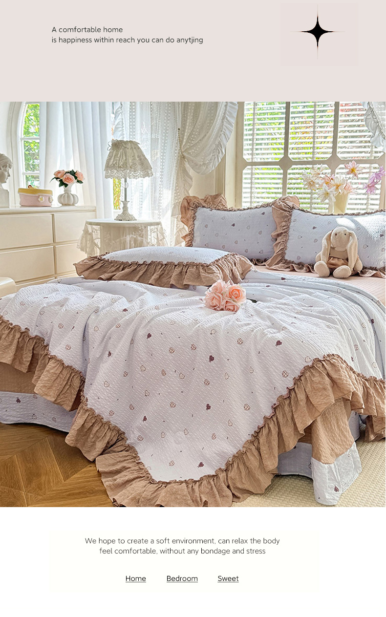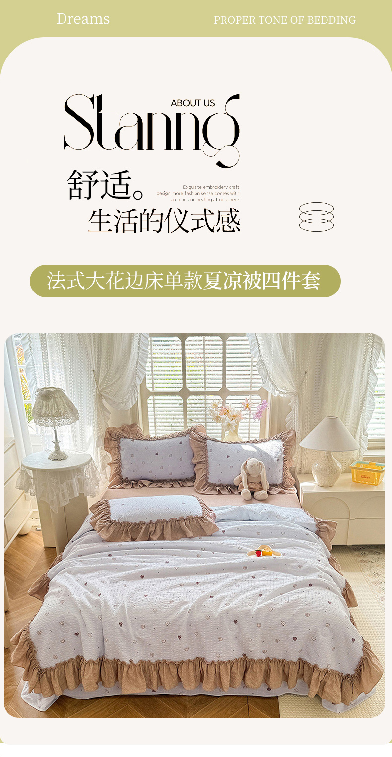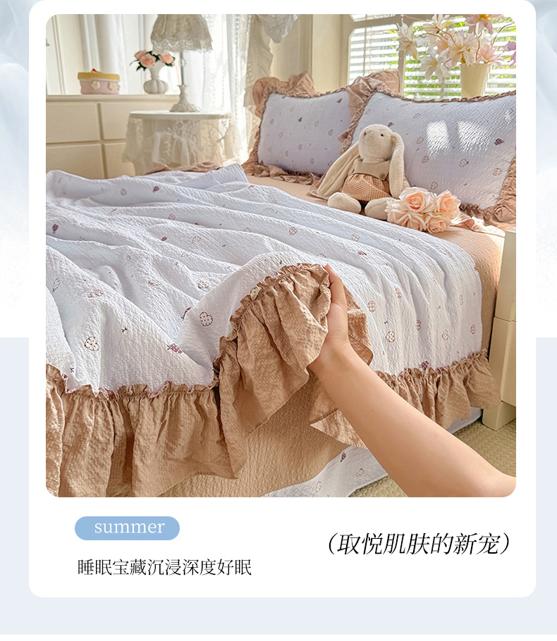 (总)韩约家纺 2026春夏新款韩式花边泡芙棉床单款夏被夏凉被空调被四件套,奶油泡芙,安暖如夏,宝妮,波点红,花春城,马上有钱,苏糖咖,旺旺,微花耳耳,星梦伙伴,星星人,紫色心情