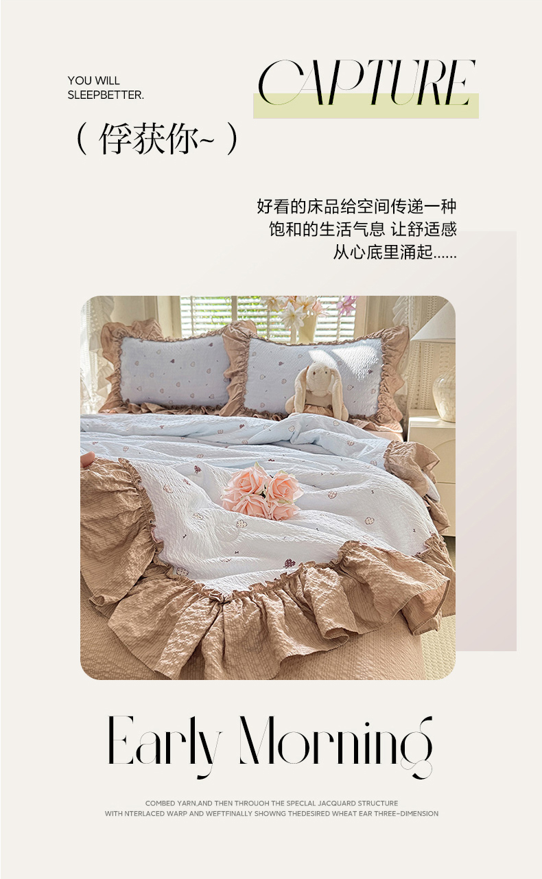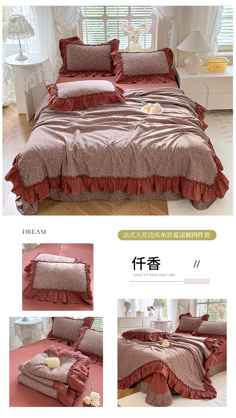 (总)韩约家纺 2026新款法式大花边床盖款泡芙棉夏凉被空调被四件套,倚梦,宝贝甜心,春旭,蝶语,繁花,花沐,绿意,木槿,妮可,仟香,星语,熊宝