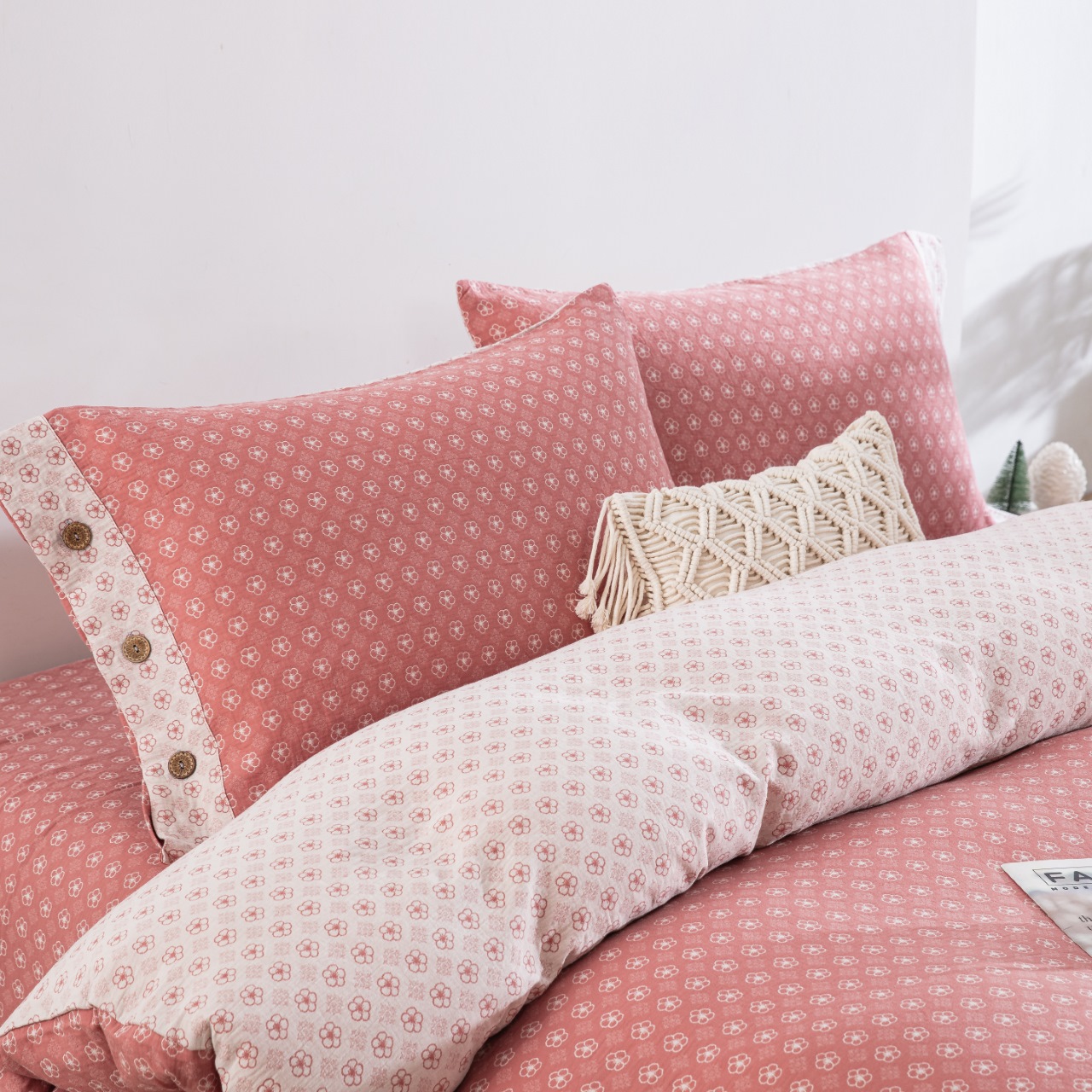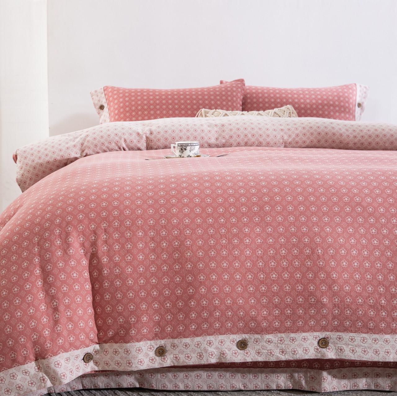 (总)仰望棉麻双层纱供应链 2026新款织语全棉纯棉色织提花双层纱纽扣款四件套,织语-粉色,织语-紫