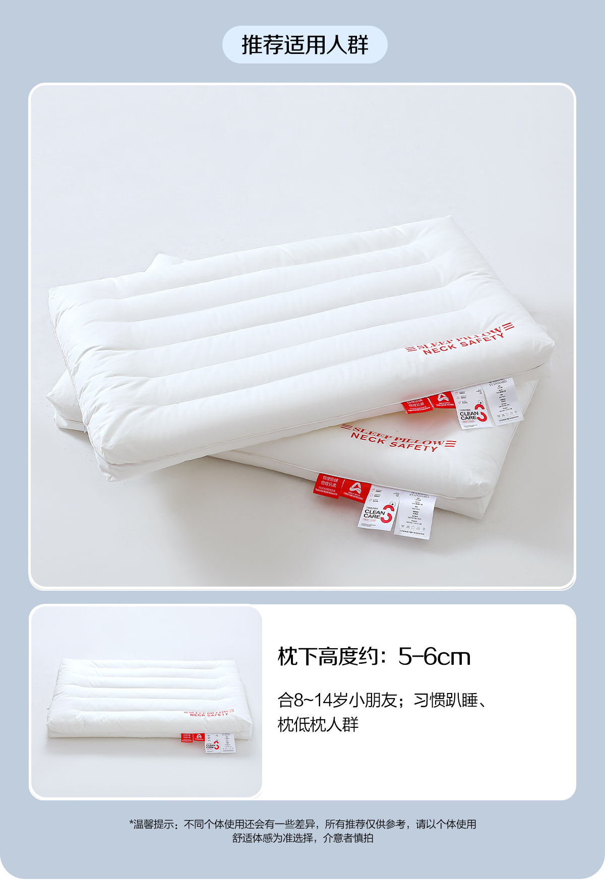 全棉无荧光低平枕芯柔软枕头 零甲醛防螨抗菌 婴幼级保护枕,儿童枕,学生枕,柔软款-低,柔软款-中,柔软款-高,护颈款-中,护颈款-高