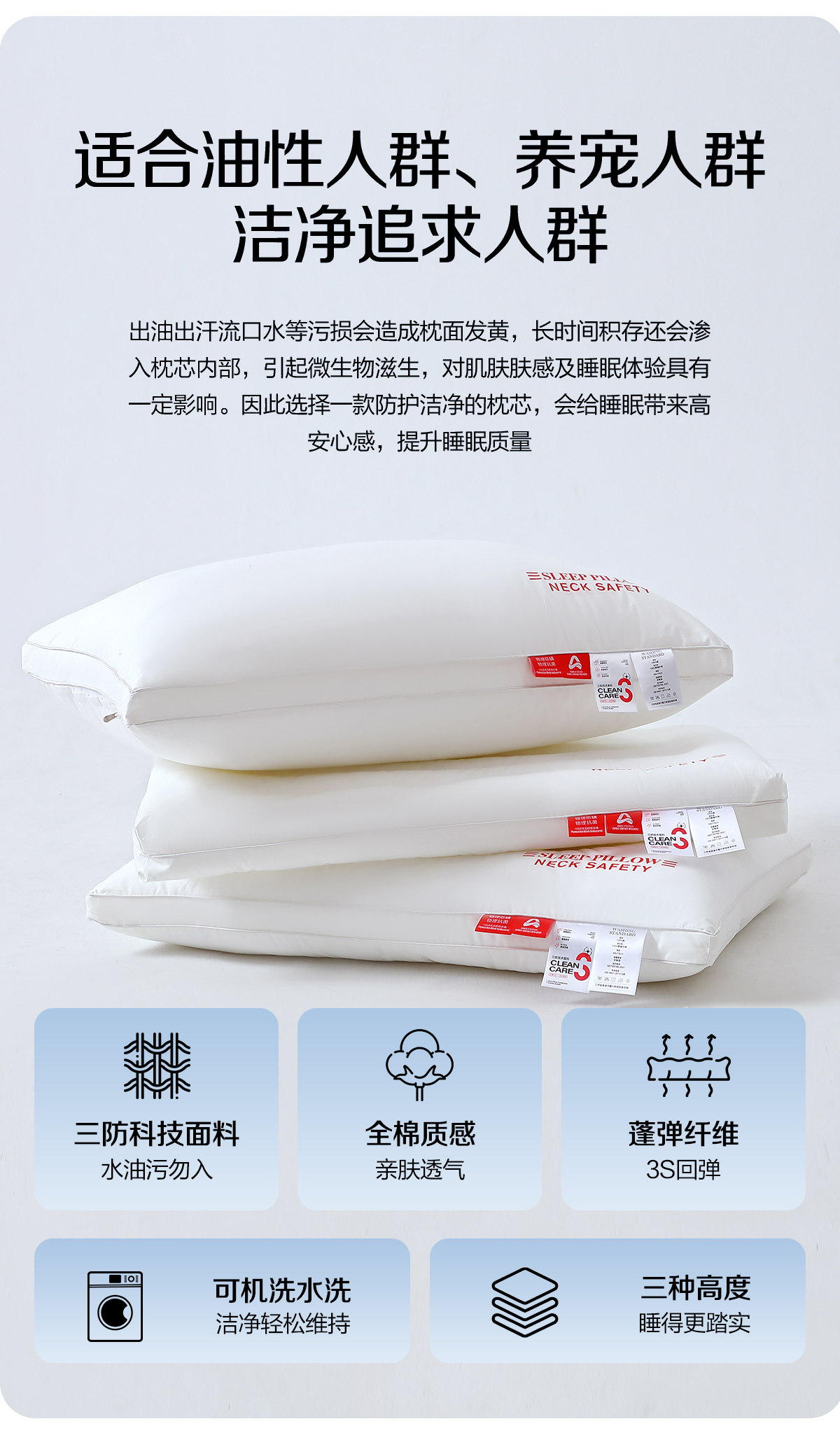 (总)新款A类全棉三防枕护颈枕头枕芯防水防油防污