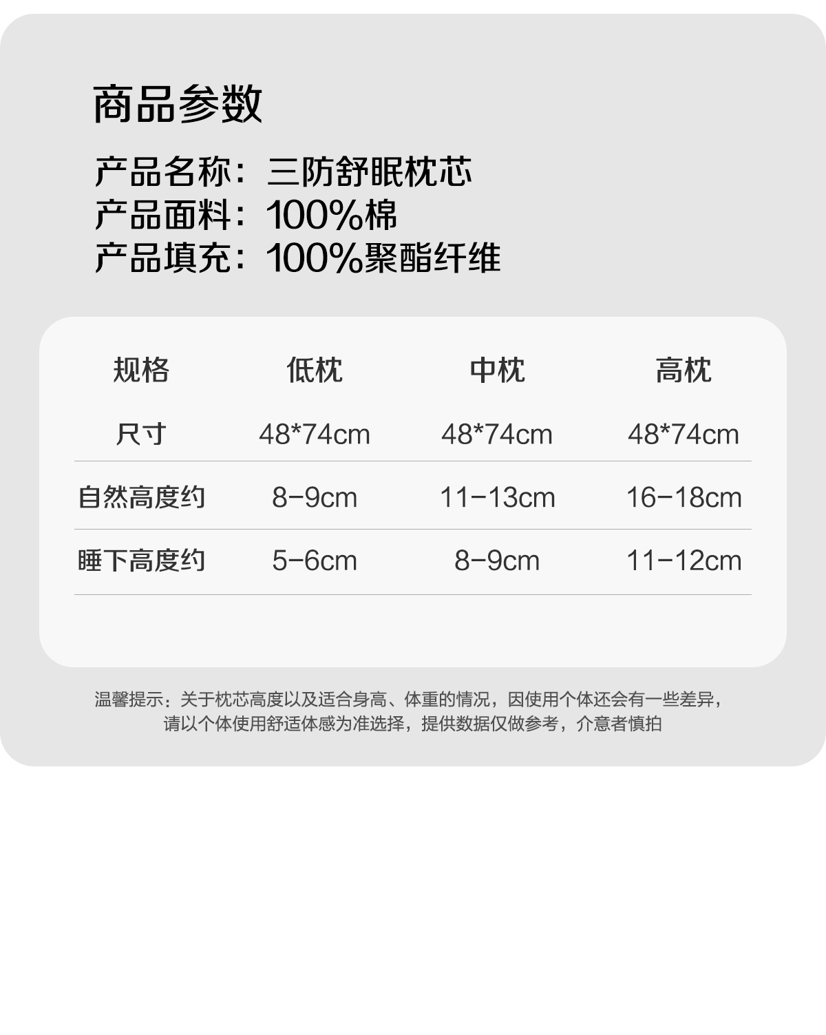 商品名称:(总)新款A类全棉三防枕护颈枕头枕芯防水防油防污