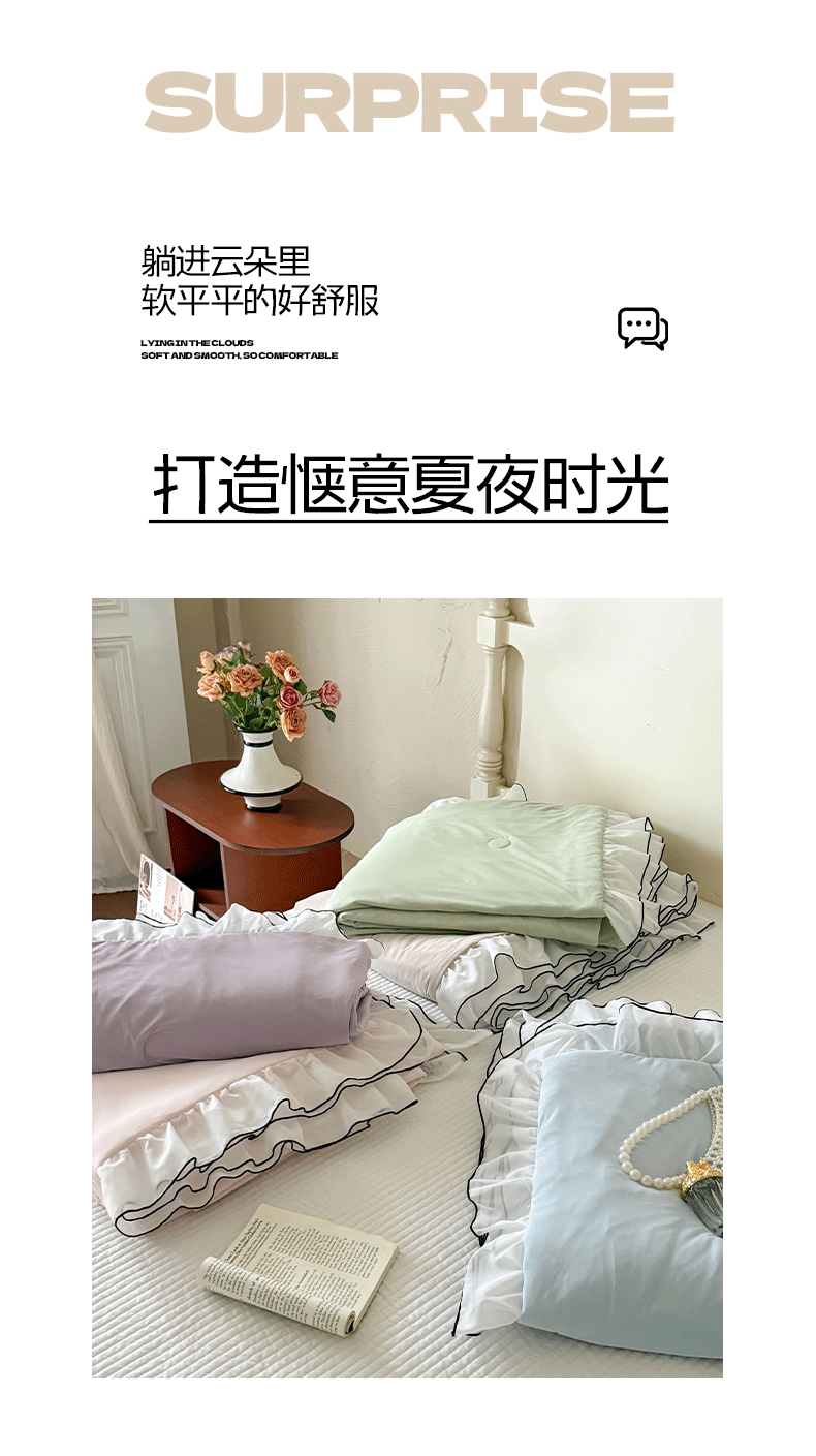(总)吾欢心 2025新款公主风雪纺边四季通用夹棉床盖,床盖白,床盖粉,床盖黄,床盖咖,床盖绿,床盖抹茶绿,床盖紫