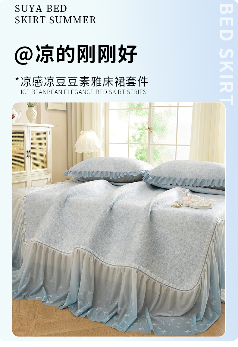 (总)共鸣沙发垫 2026新款冰豆豆素雅床裙系列,素雅蓝色,素雅粉色,素雅灰色,素雅绿色,素雅米黄