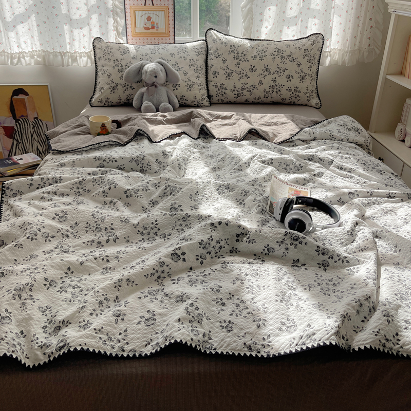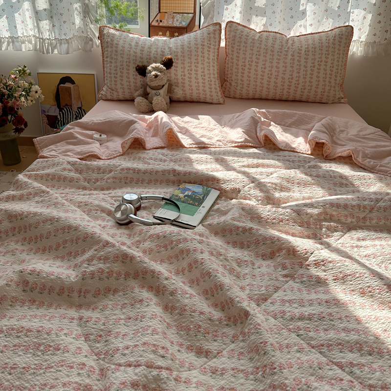(总)禾沐 2026新款泡芙纱夏被四件套简单款,波点,粉黛,粉色小心心,格格心,格系萌宠,花间娃娃,花镜人偶黄,花序,灰猫头,旧街星星,咖爱心,咖豹纹,兰爱心,浅川纹,森林描绘,田园兔,只闻花香,紫陌,KT猫,古典格,浅夏花信,岚韵花香,紫爱心