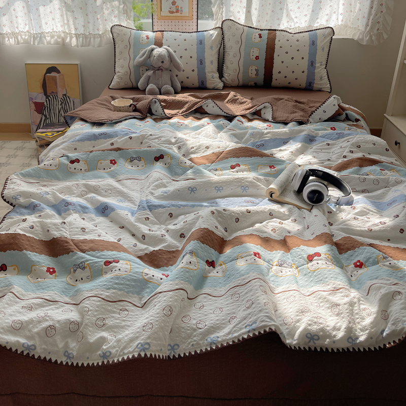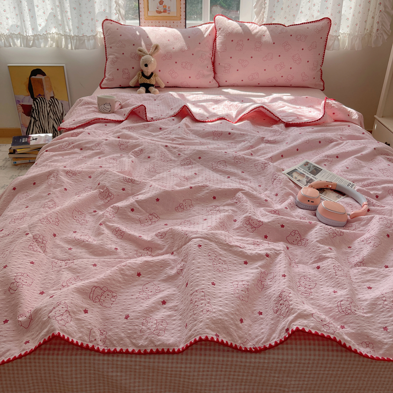 (总)禾沐 2026新款泡芙纱三角针床盖夏被四件套,波点,粉色小心心,格格心,旧街星星,咖豹纹,兰爱心,描线小猫粉,描线小猫咖,浅川纹,森林描绘,田园兔,星光凯蒂,只闻花香,紫陌,KT 猫