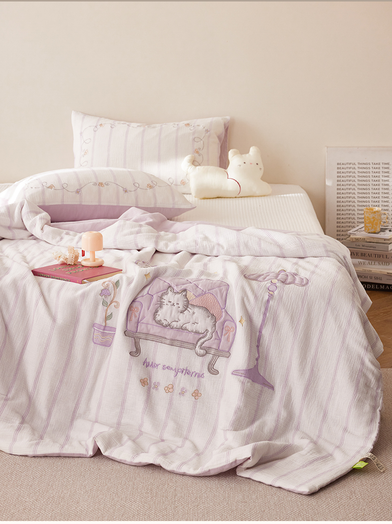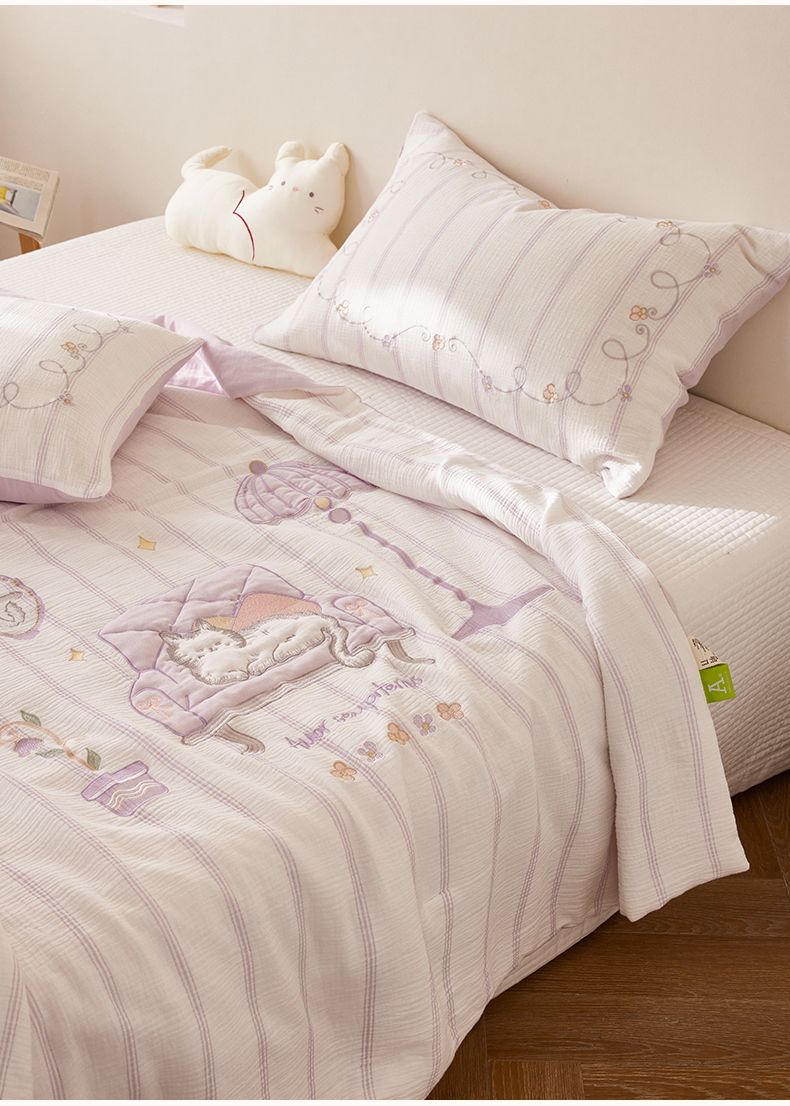 沐珩家纺 2026新款40s双层皱皱纱绣花夏被泡芙纱系列 皱皱纱-紫雾奶芙
