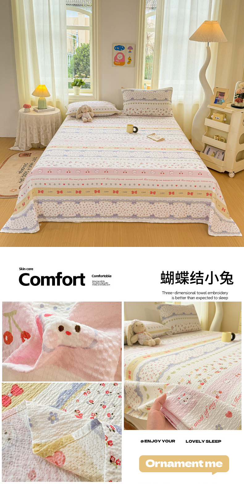 (总)梵朴 2026新款A类泡芙棉云感木棉邹邹纱双层纱床笠三件套,豹纹泡芙狗,花从小兔,花季紫,蝴蝶结小兔,酒渍櫻桃,春日花语,璀璨星空,费尔岛木马,快乐马里奥,快乐小狗,蓝调爱心,蓝色领结狗,猫咪蓝,萌宠,木马小花,暖檣枝,泡芙KT-绿,泡芙KT-紫,甜品萌狗,星星玩偶黄,星星玩偶紫,紫花免