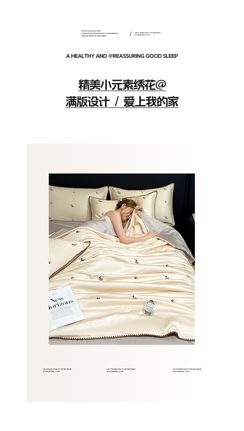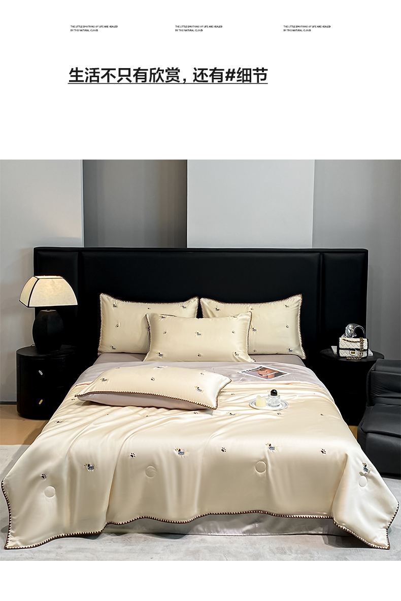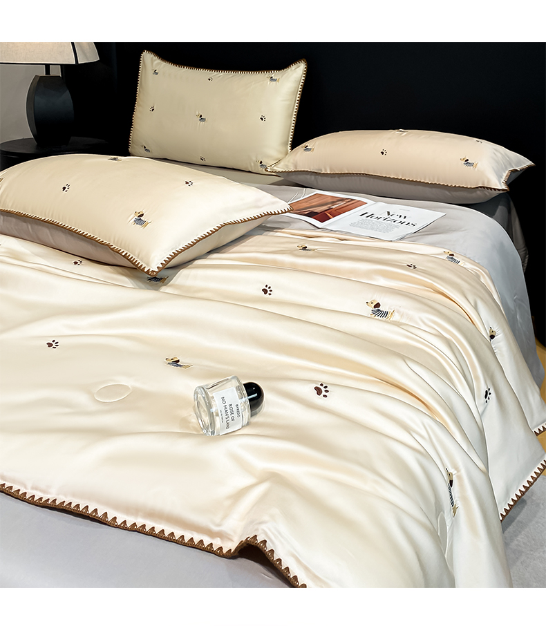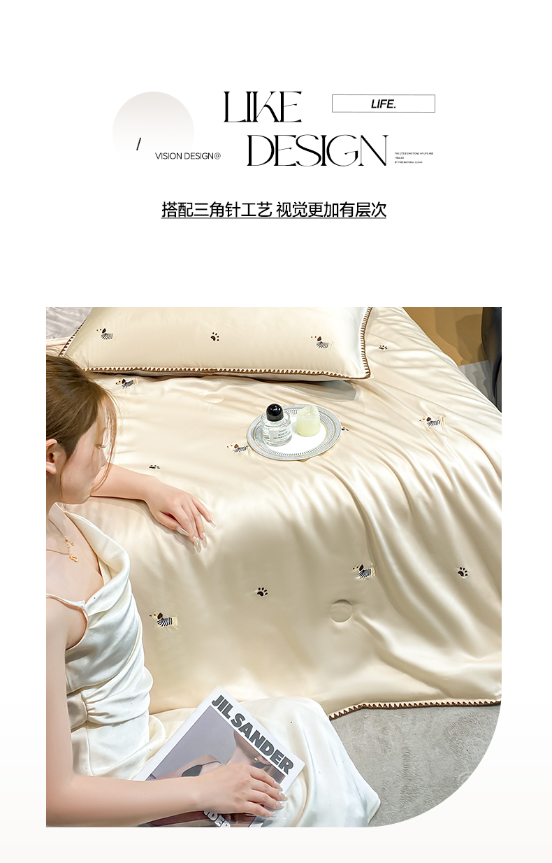 • 91家纺网 家纺一手货源 找家纺 如一 2026新款水洗冰丝刺绣三角针工艺夏被四件套 腊肠犬-杏灰