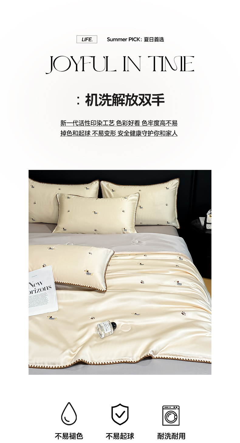 (总)如一 2026新款水洗冰丝刺绣三角针工艺夏被四件套,可美猫-白粉,爱心结-白粉,爱心结-白蓝,爱心结-杏灰,可美猫-粉黑,可美猫-粉米,腊肠犬-白蓝,腊肠犬-蓝灰,腊肠犬-杏灰,甜荔枝-白粉,甜荔枝-白蓝,甜荔枝-粉红,小马驹-绿米,小马驹-杏灰
