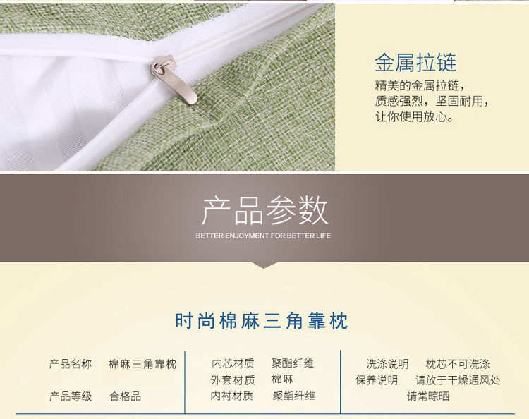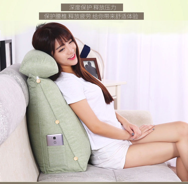 商品名称:纯色大棉麻三角靠垫床头榻榻米办公室电脑椅子夏天可拆洗的靠腰