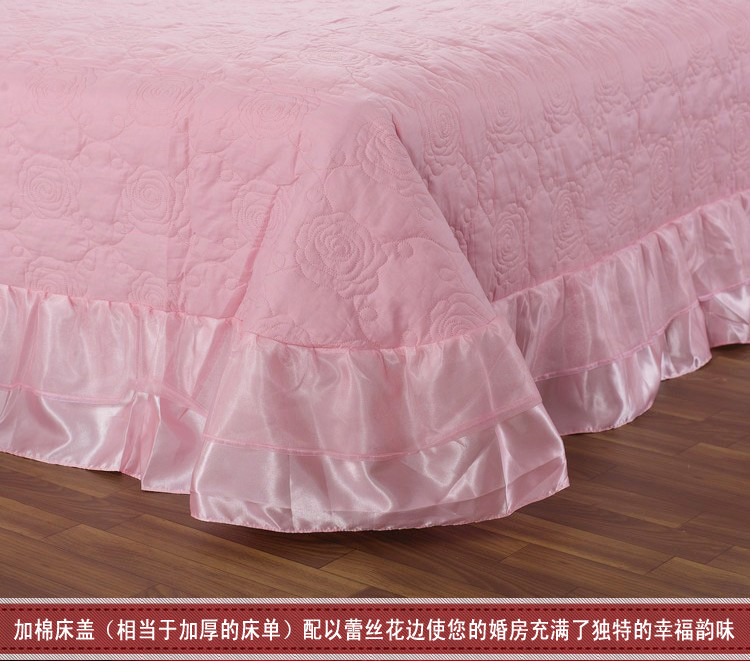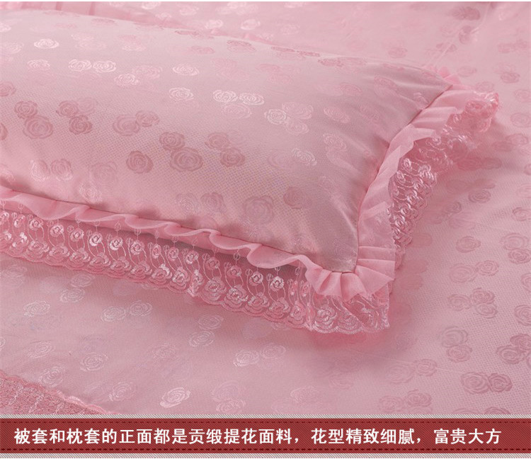 商品名称:晶缦家纺 薇薇新娘蕾丝贡缎四-七件套 粉