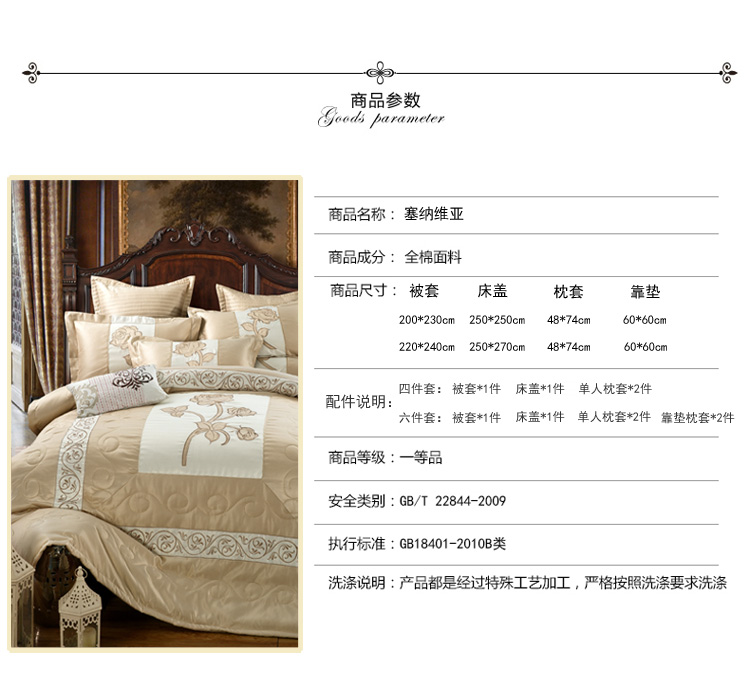 商品名称:(总)兴美佳家纺 高档奢华欧式宫廷风加棉四件套塞娜维亚