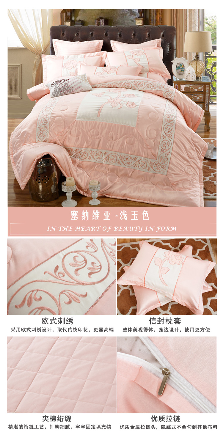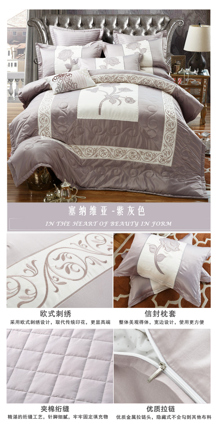 (总)兴美佳家纺 高档奢华欧式宫廷风加棉四件套塞娜维亚,浅驼色,浅玉色,樱花粉,优雅紫,紫灰色,靠垫套60*60