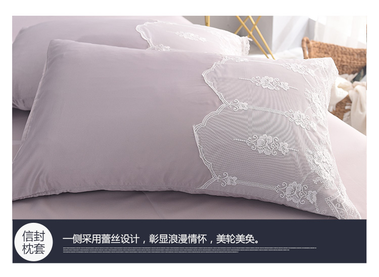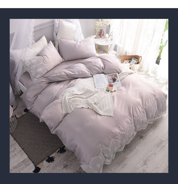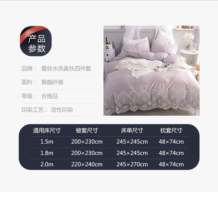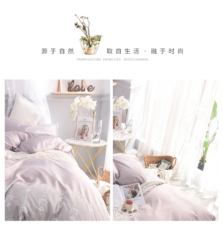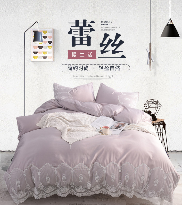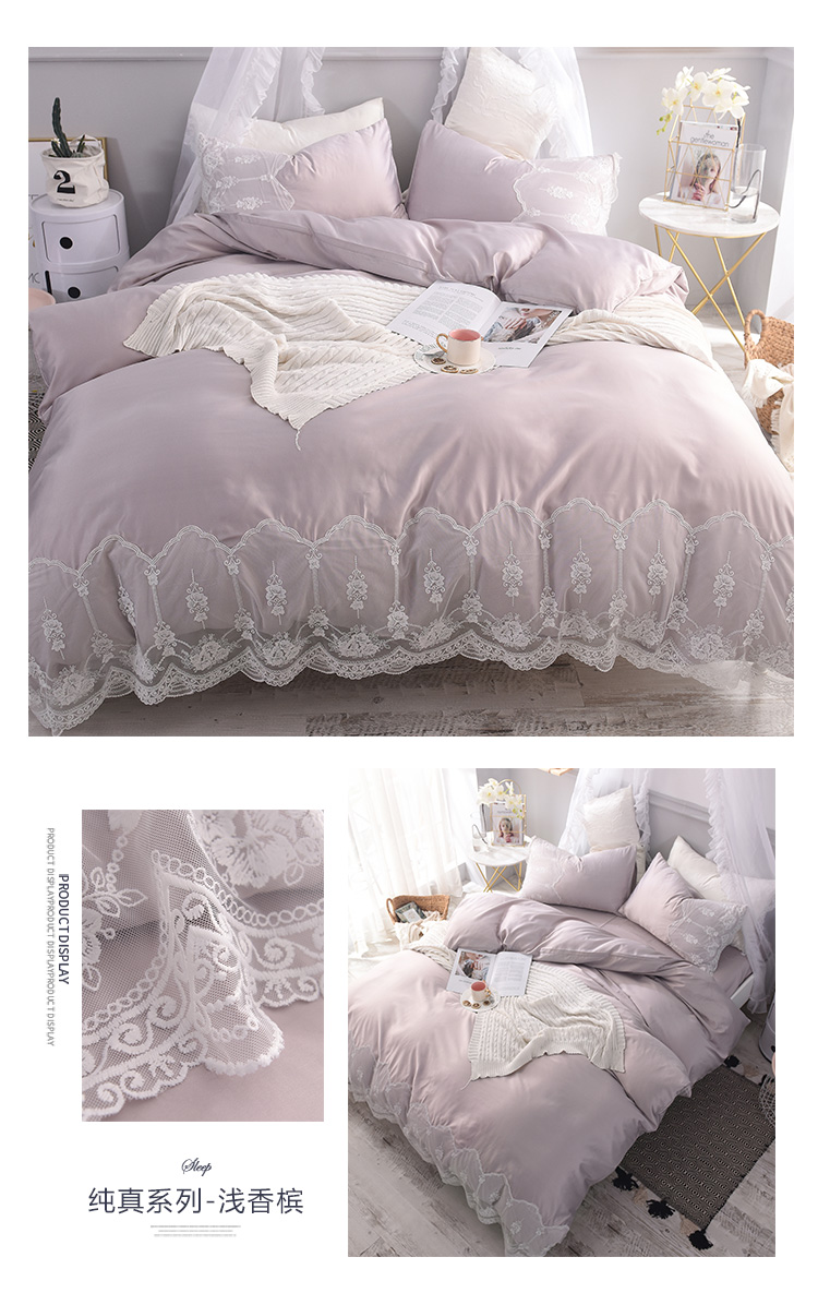 艾米家居 2025新款韩版双层花边轻奢浮雕系列水洗冰丝四件套 豆沙花边,豆沙花边