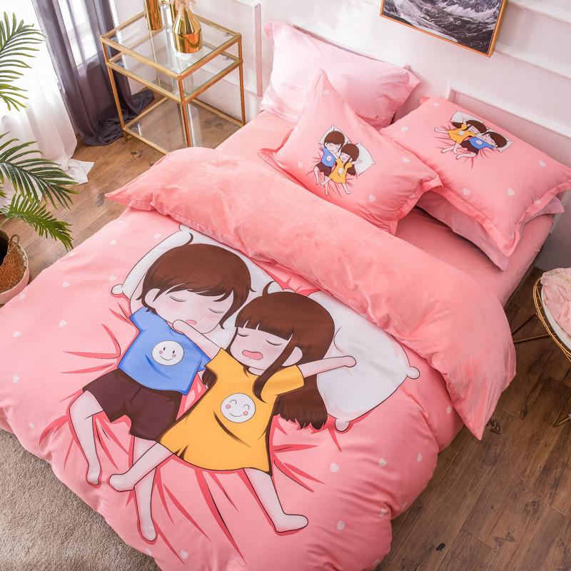 馨蕊家居 2018秋冬新品印花棉加绒四件套 野蛮女友