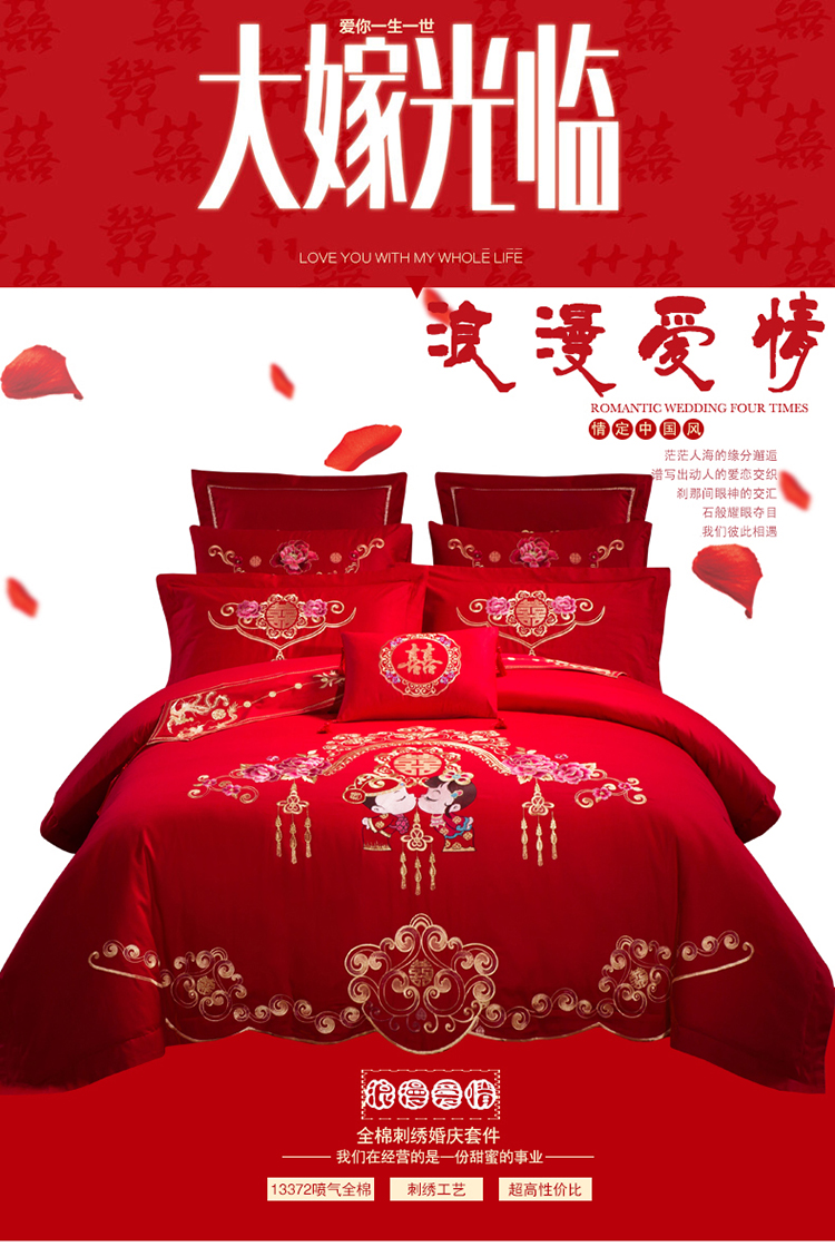 (总)慕她家纺 2025慕她婚庆四件套大红色全棉纯棉刺绣结婚床上用品-系列二,花蔓喜多大红,花蔓喜多粉色,花蔓喜多雪青,花蔓喜多玉色,佳人情浓,幸福花开,暗香大红,永结同心,鸳鸯龙凤,喜结良缘,皇家盛宴,皇家婚礼,皇室婚嫁,爱意永恒,浪漫爱情,浪漫婚礼,浪漫婚礼玉,龙凤百年,龙凤成双,龙凤贺喜,龙凤蜜语,龙凤齐眉,龙凤情深,龙腾凤舞,玫瑰蜜语,盘龙舞凤,盘龙戏凤,盘龙逸凤,卿卿我我,情定一生,丘比特,雀之蜜语,双喜百年,双喜良缘,送福百子,我们结婚啦,喜事多多,心心相印,百子迎亲,幸福恋歌,保证书,浪漫景色,欧典风情,千禧之恋,情有独钟,世纪之恋,喜事满屋,形影不离,幸福有约,永恒之恋,缘定今生,约会春天,真爱永恒,最强喜事