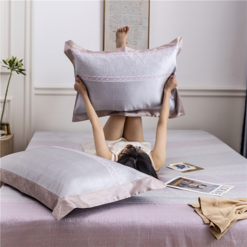 商品名称:时年家纺 2019新款凉席冰丝席冰露丝床笠款 马赛条纹-粉