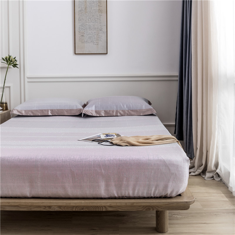 时年家纺 2019新款凉席冰丝席冰露丝床笠款 马赛条纹-粉