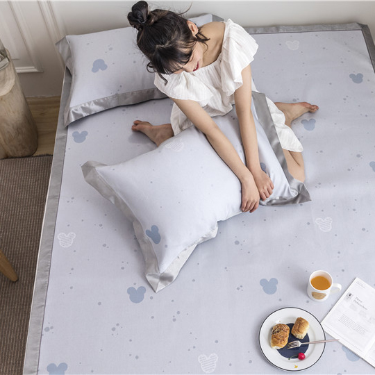 时年家纺 2019新款凉席冰丝席冰露丝提花款 米奇-蓝