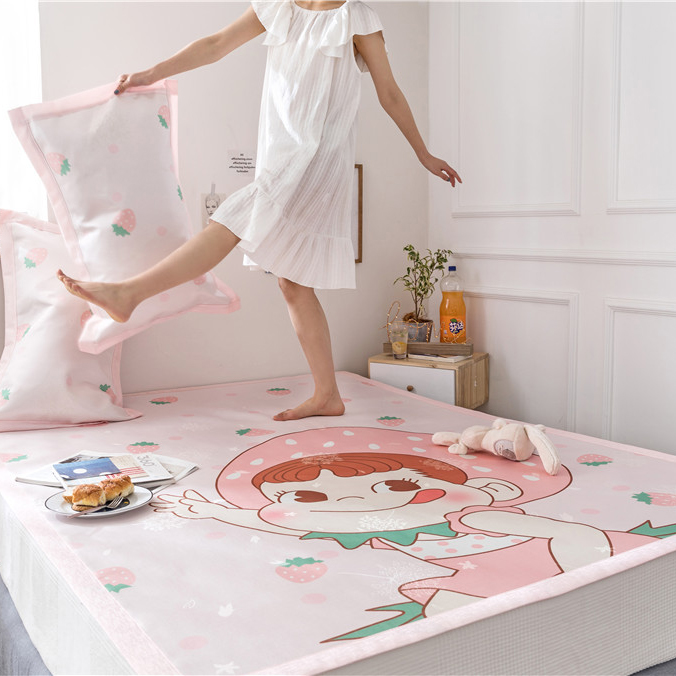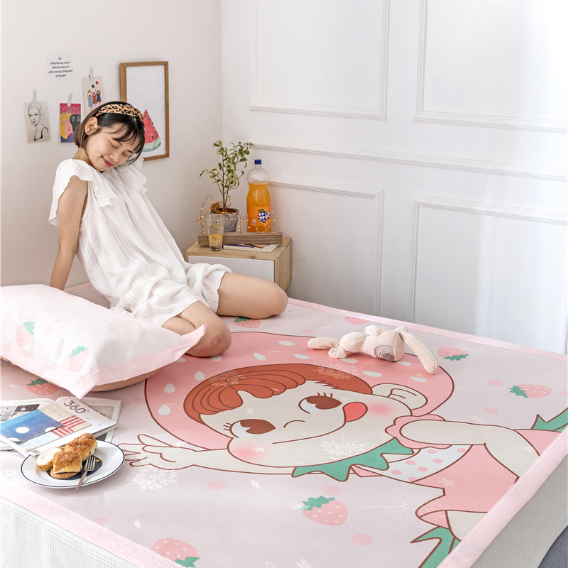 时年家纺 2019新款凉席冰丝席水洗养生席 草莓女孩