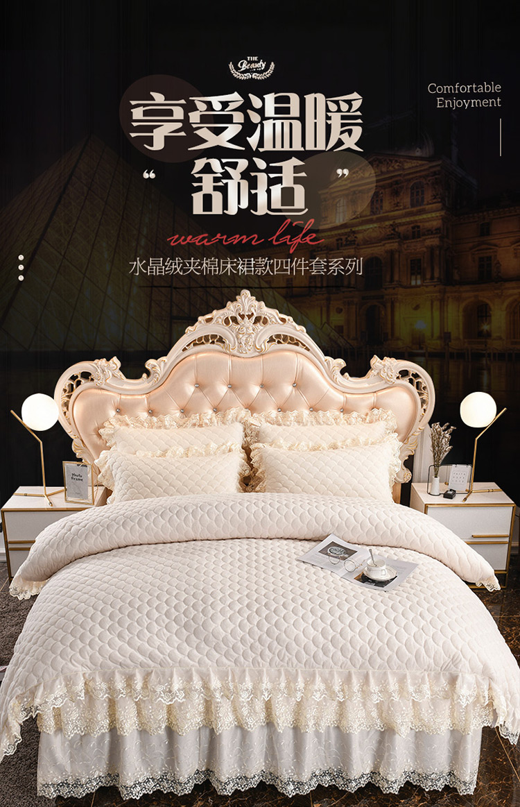 (总)恒爱 2022秋冬水晶绒翩翩花舞夹棉床裙四件套,大红色,豆沙红,橄榄绿,公主粉,桔色,咖啡色,孔雀绿,拉菲红,罗兰紫,玫红色,美人玉,米白色,米驼色,抹茶绿,浅灰色,紫色
