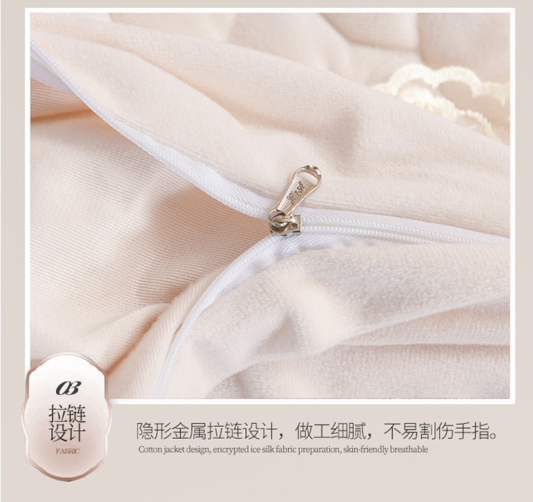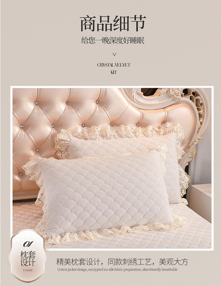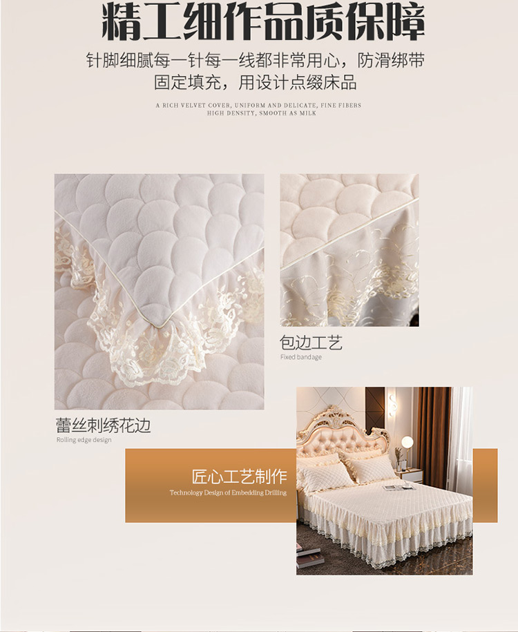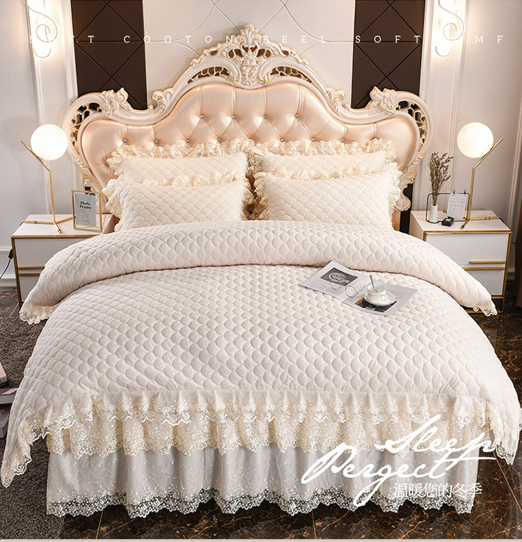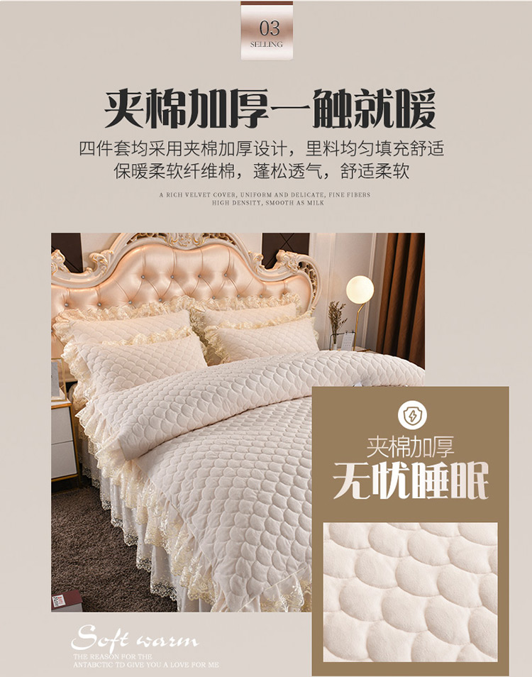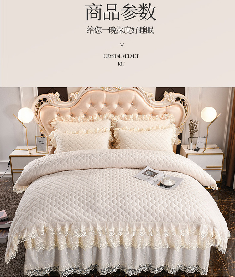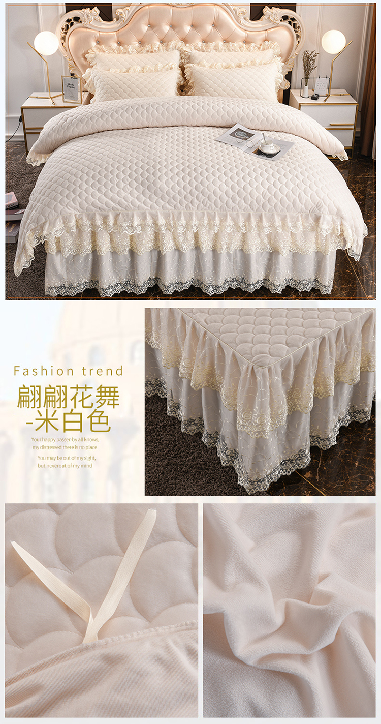 商品名称:恒爱家纺2021新款水晶绒夹棉蕾丝四件套 翩翩花舞-米白色