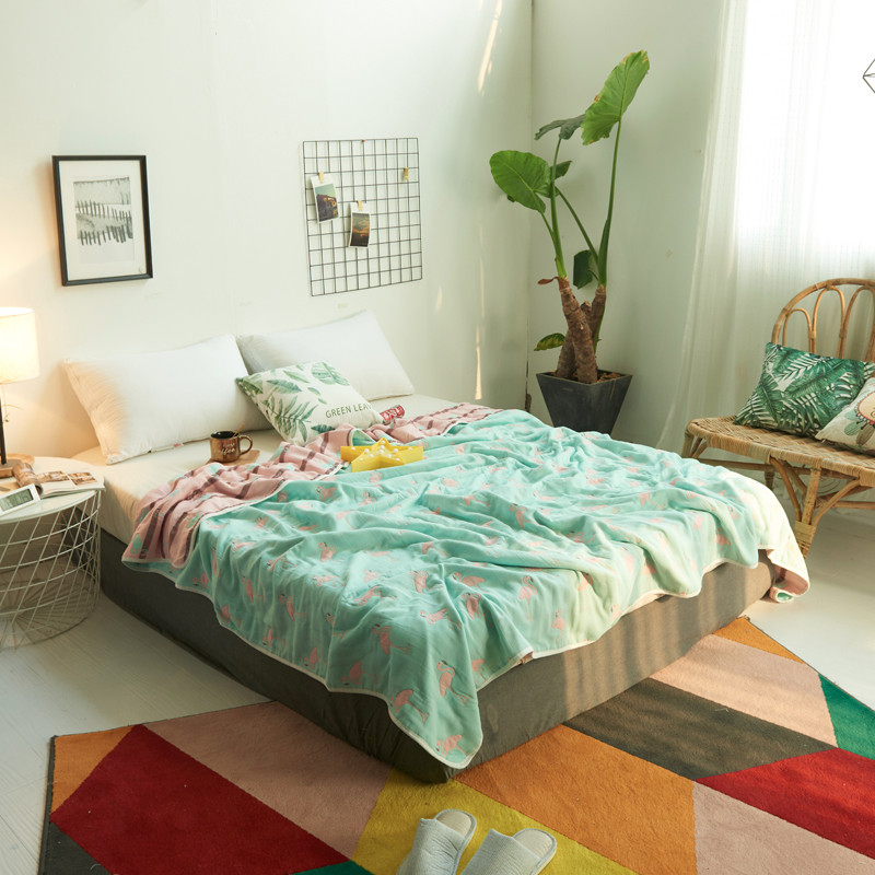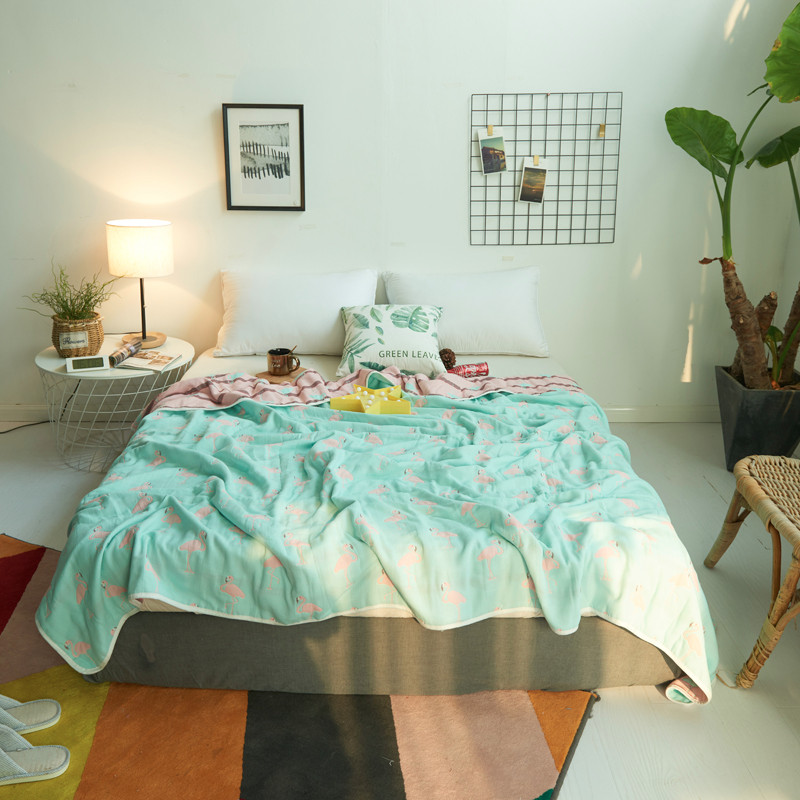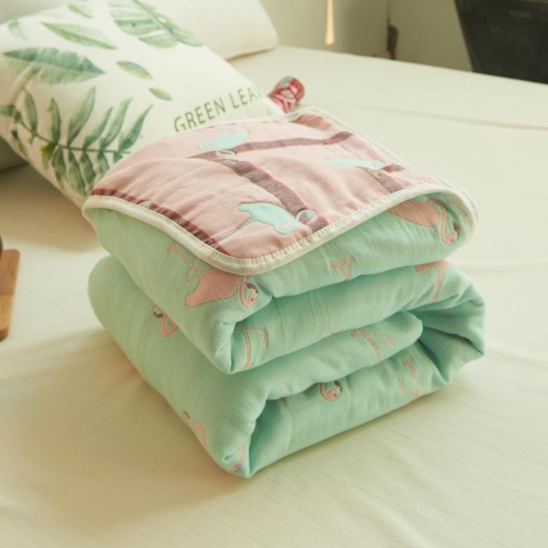 商品名称:朴尔家纺 六层全棉纱布毛巾被 火烈鸟-浅蓝