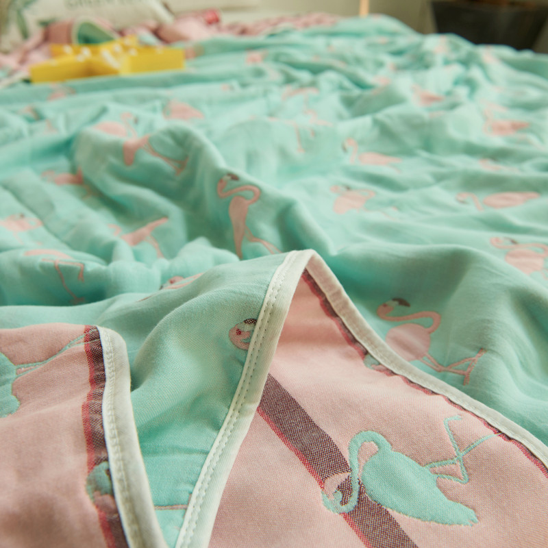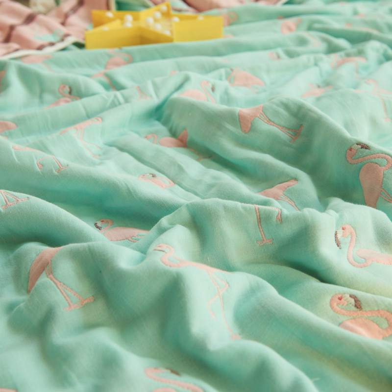 朴尔家纺 六层全棉纱布毛巾被 火烈鸟-浅蓝