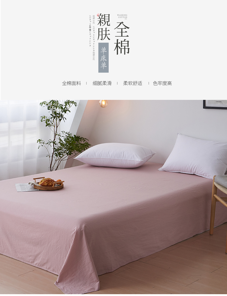 MR.PIG全棉水洗棉床单单件简约纯色纯棉学生宿舍单双人被单